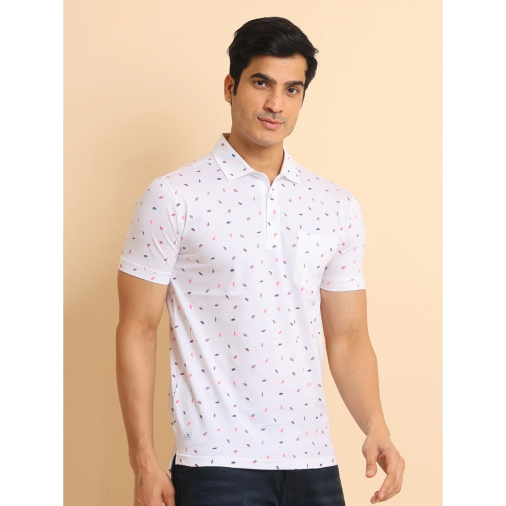 Generic Men’s Casual Cotton Printed Polo Neck Half Sleeve T-Shirt (White)