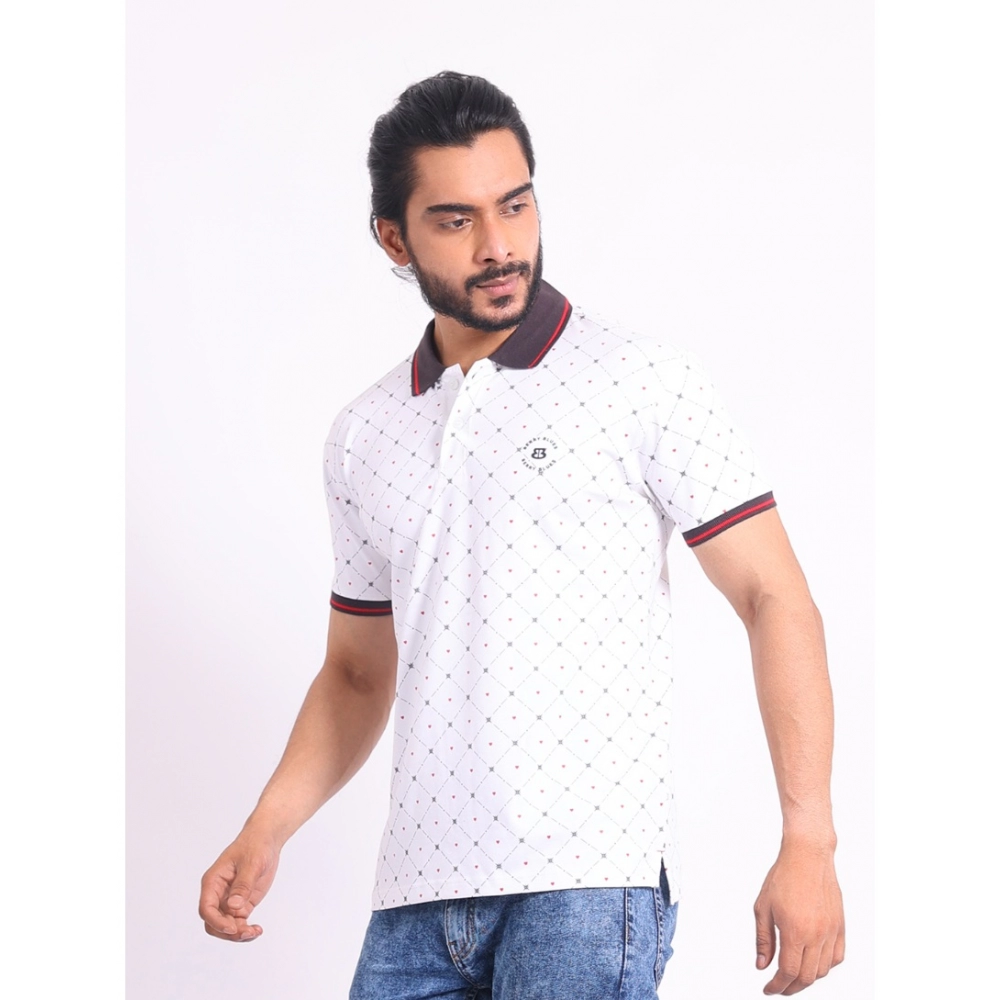 Generic Men’s Casual Cotton Printed Polo Neck Half Sleeve T-Shirt (White)