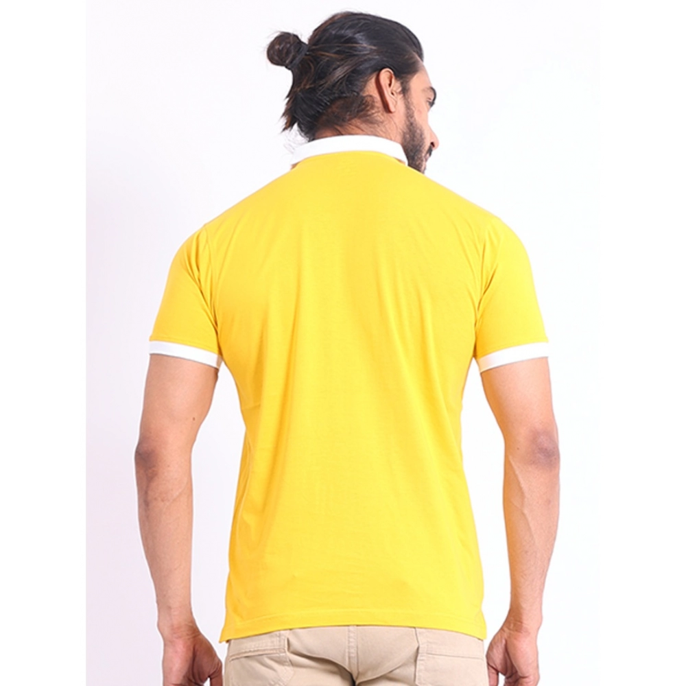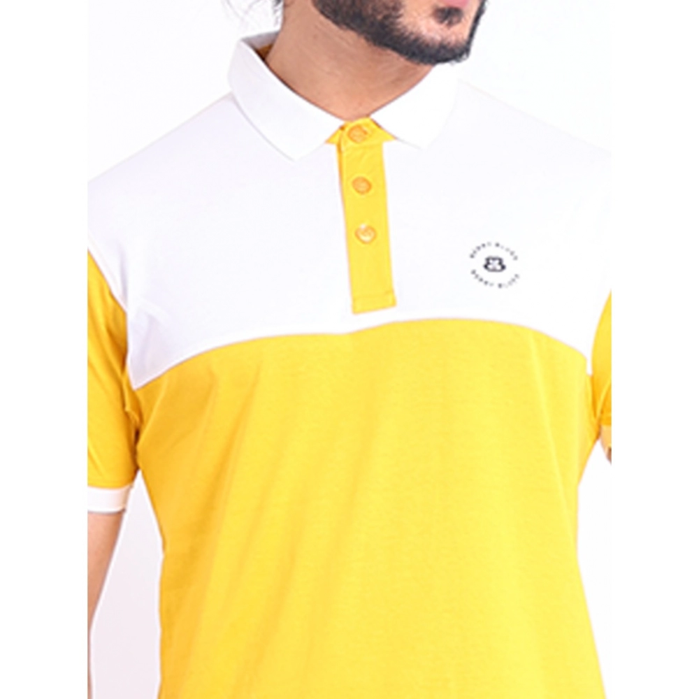 Generic Men’s Casual Cotton Printed Polo Neck Half Sleeve T-Shirt (Yellow)