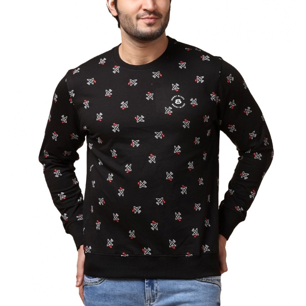 Generic Men’s Casual Cotton Printed Round Neck Full Sleeve Sweat T-Shirt (Black)