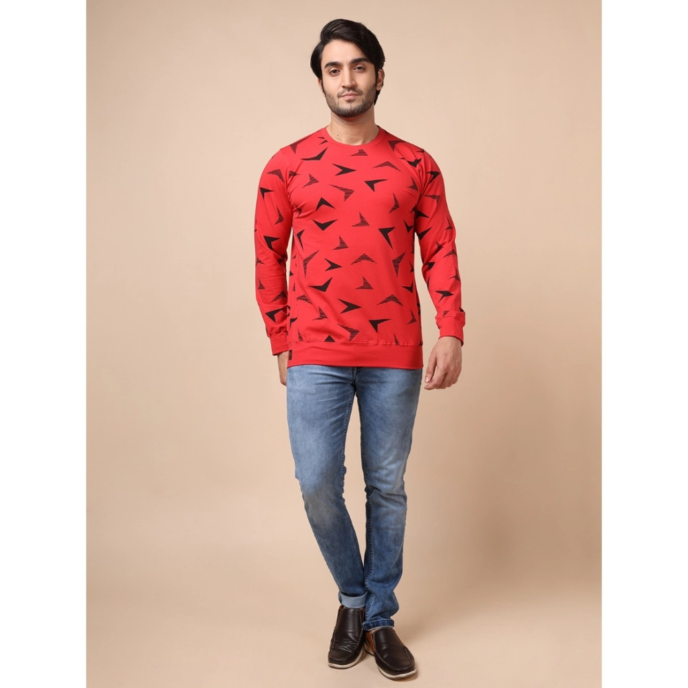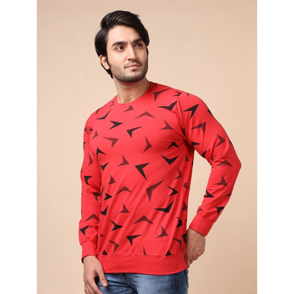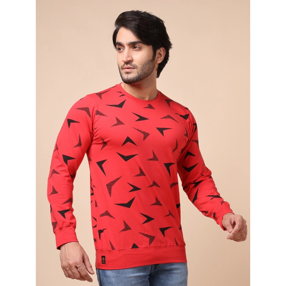 Generic Men’s Casual Cotton Printed Round Neck Full Sleeve T-Shirt (Red)