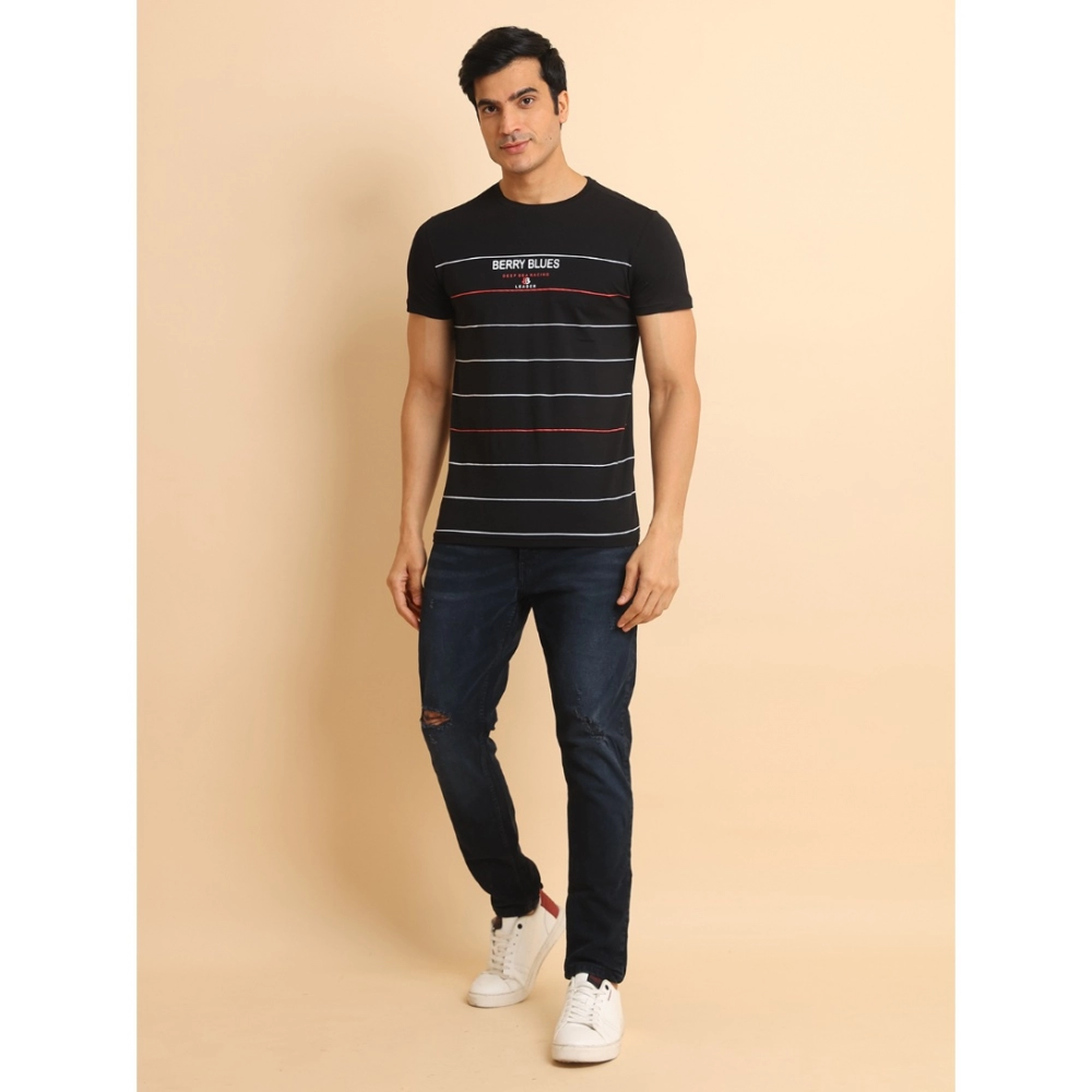 Generic Men’s Casual Cotton Printed Round Neck Half Sleeve T-Shirt (Black)