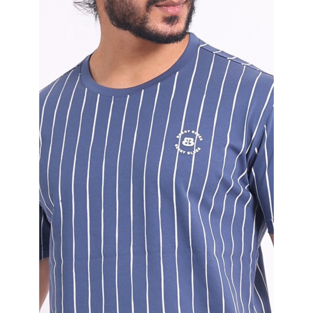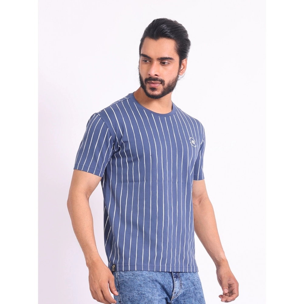 Generic Men’s Casual Cotton Printed Round Neck Half Sleeve T-Shirt (Blue)