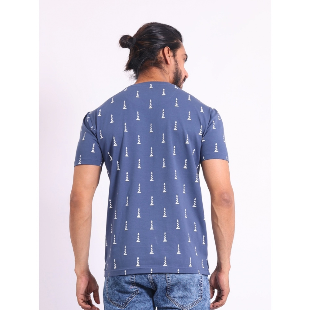 Generic Men’s Casual Cotton Printed Round Neck Half Sleeve T-Shirt (Blue)