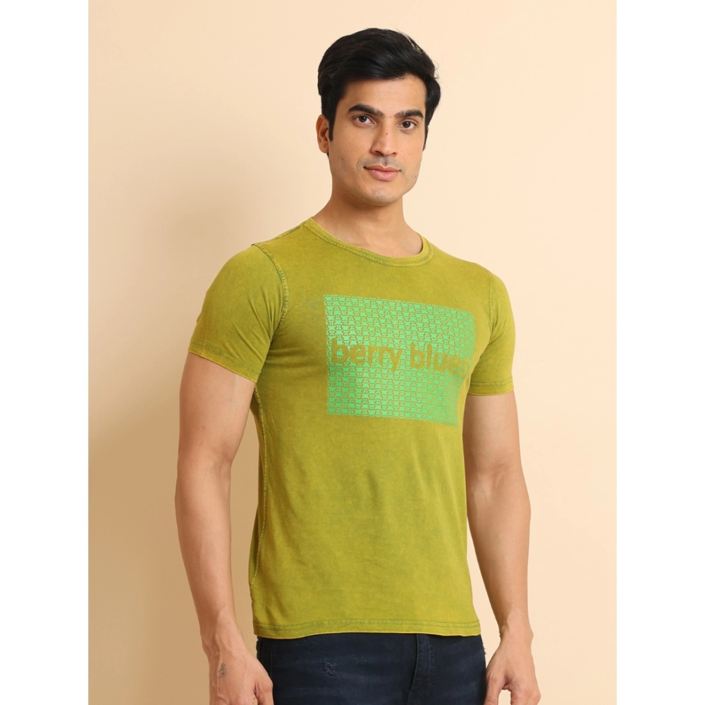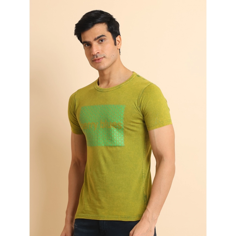 Generic Men’s Casual Cotton Printed Round Neck Half Sleeve T-Shirt (Green)