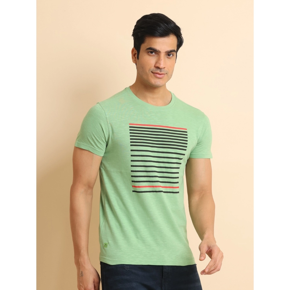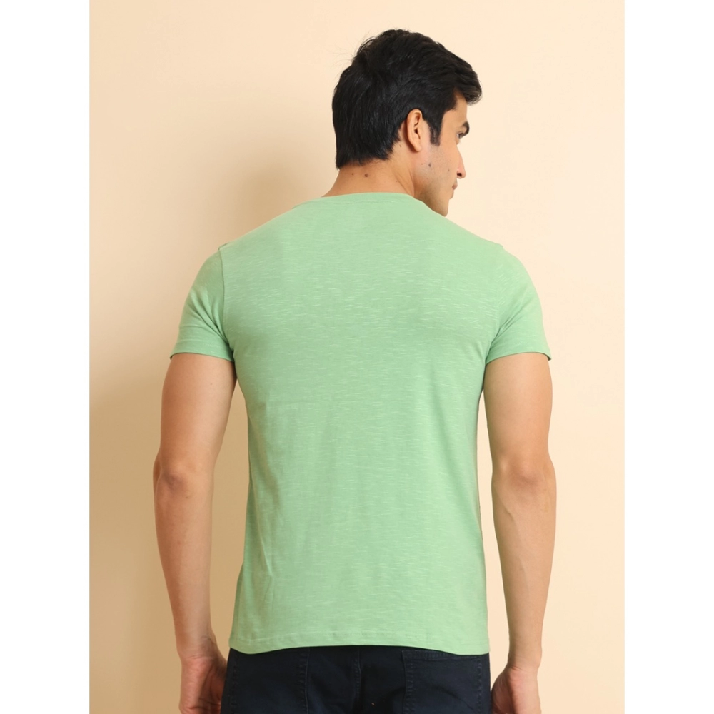 Generic Men’s Casual Cotton Printed Round Neck Half Sleeve T-Shirt (Green)