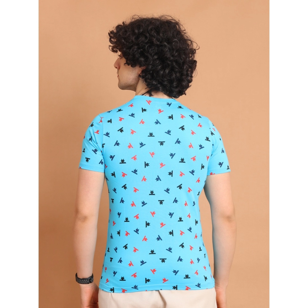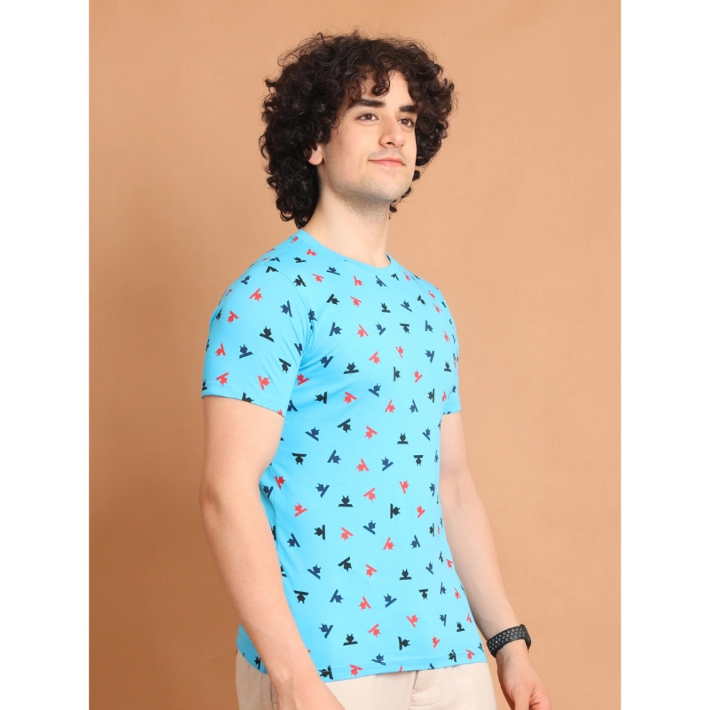 Generic Men’s Casual Cotton Printed Round Neck Half Sleeve T-Shirt (Skyblue)