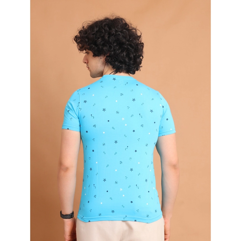 Generic Men’s Casual Cotton Printed Round Neck Half Sleeve T-Shirt (Skyblue)