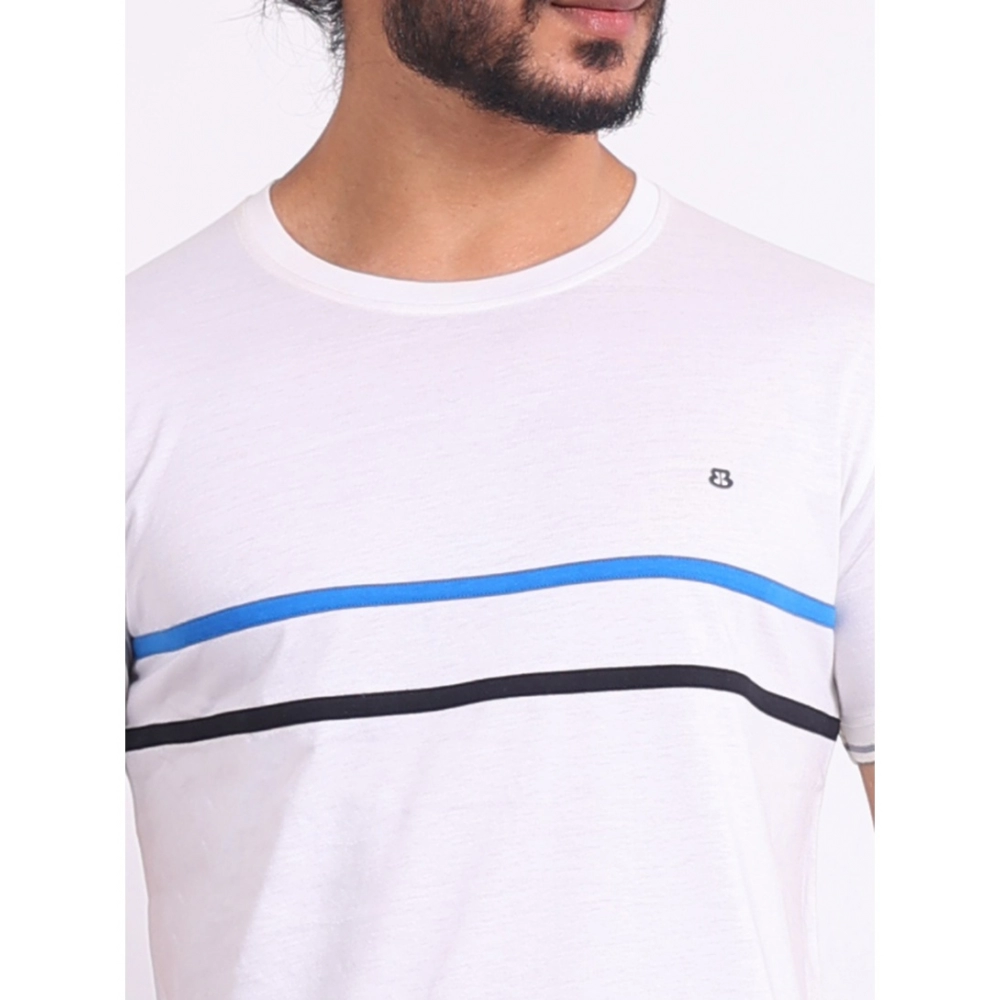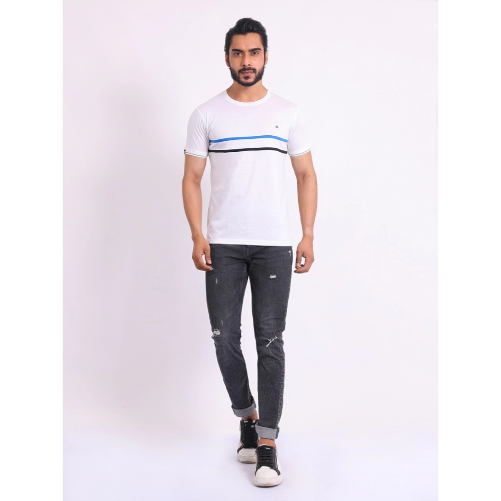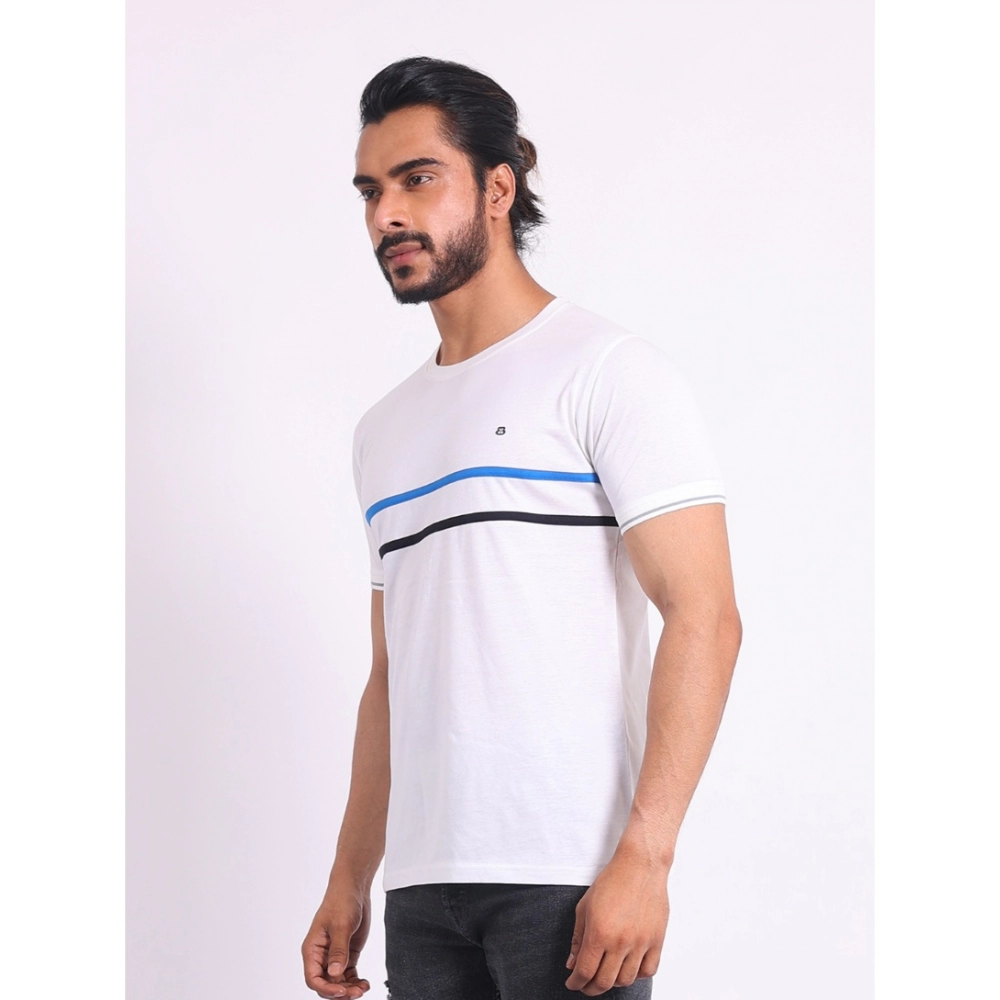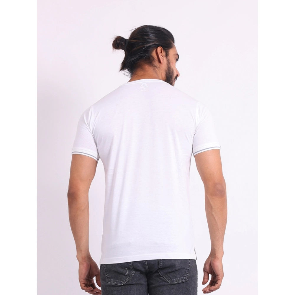 Generic Men’s Casual Cotton Printed Round Neck Half Sleeve T-Shirt (White)