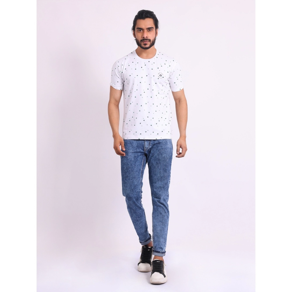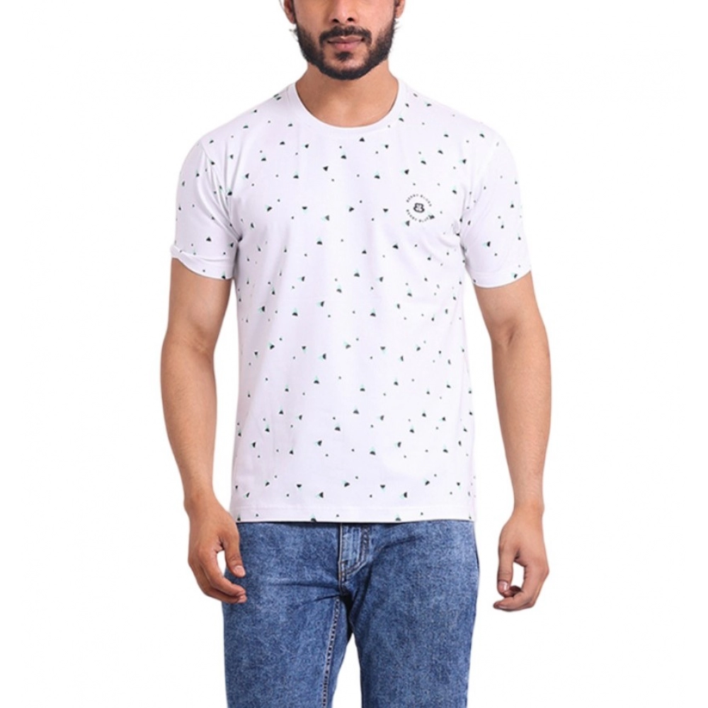 Generic Men’s Casual Cotton Printed Round Neck Half Sleeve T-Shirt (White)
