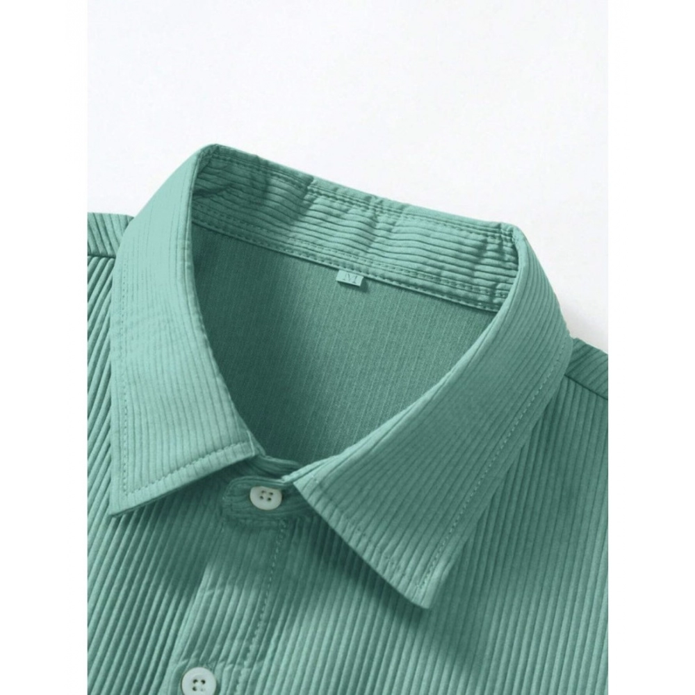 Generic Men’s Casual Short Sleeve Striped Cotton Blended Shirt (Green)
