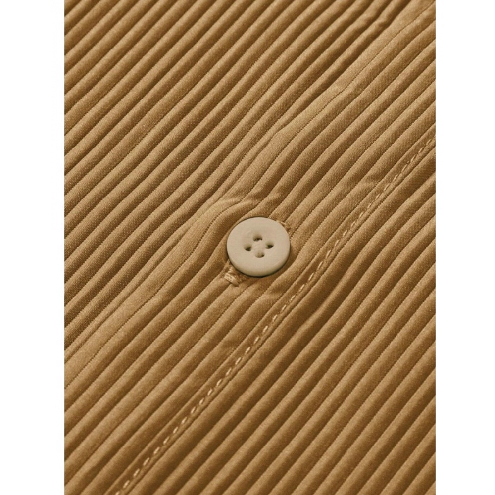 Generic Men’s Casual Short Sleeve Striped Cotton Blended Shirt (Yellow)