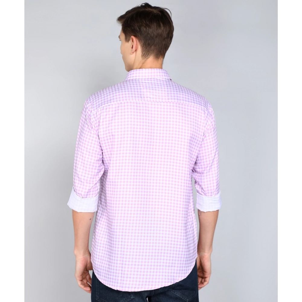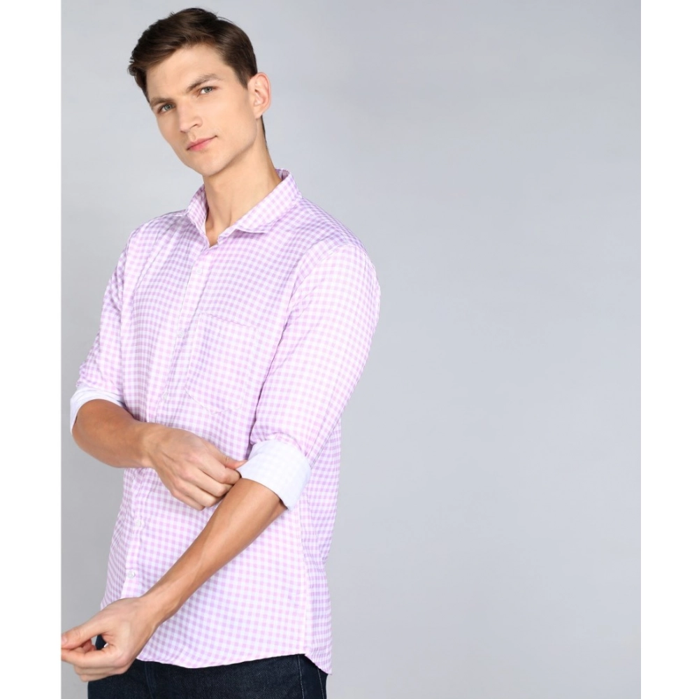 Generic Men’s Casual Viscose Rayon Checkered Full Sleeve Collar Shirt (Purple-White)