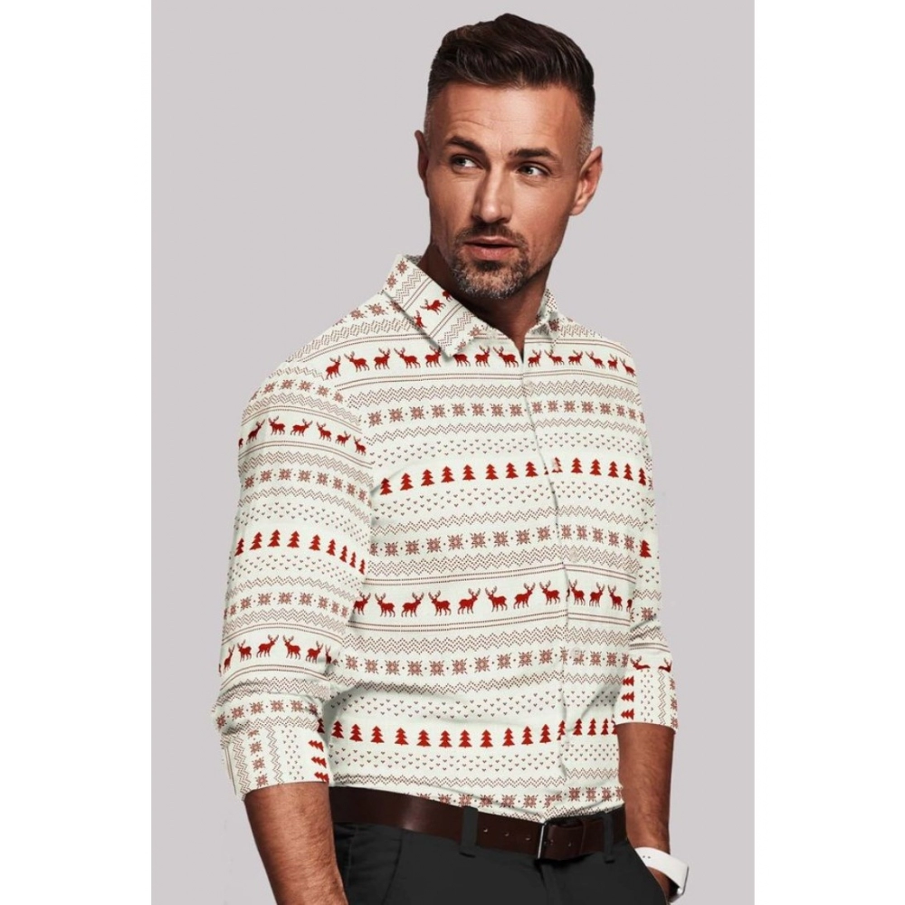Generic Men’s Cotton Blended Printed Full Sleeve Shirt (White-Red)