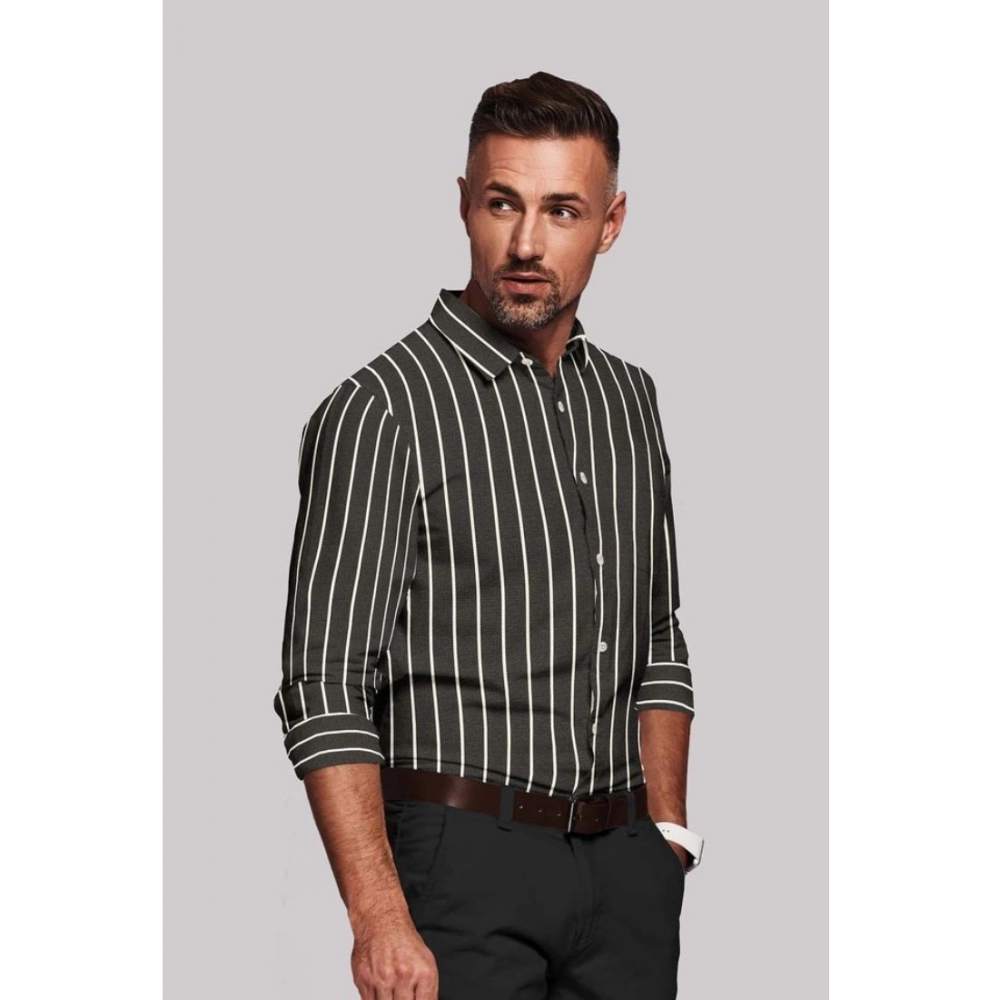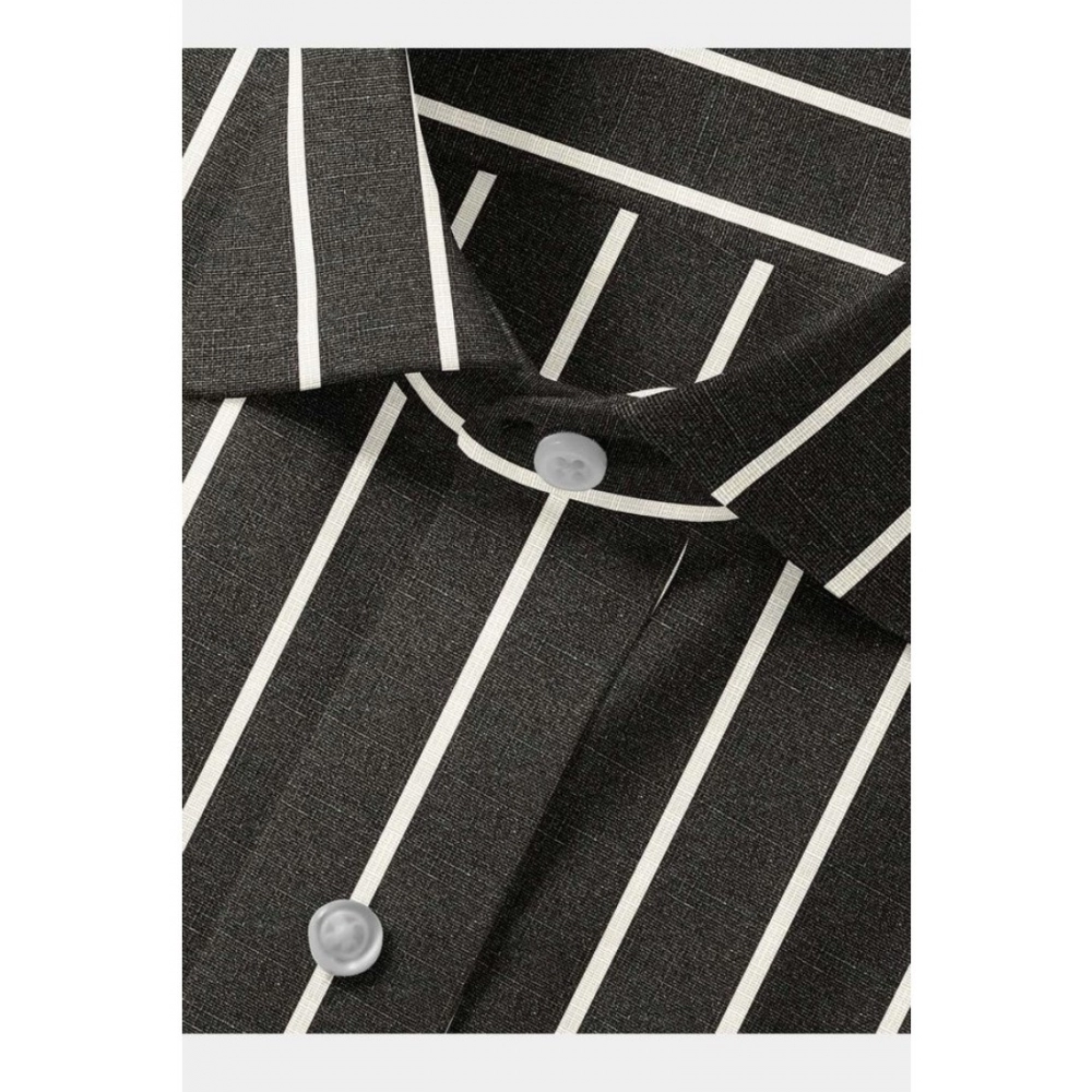 Generic Men’s Cotton Blended Striped Full Sleeve Shirt (Black-White)