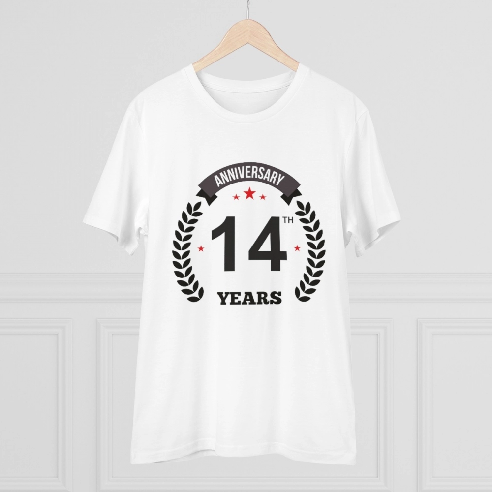 Men’s PC Cotton 14th Anniversary Printed T Shirt (Color: White, Thread Count: 180GSM)