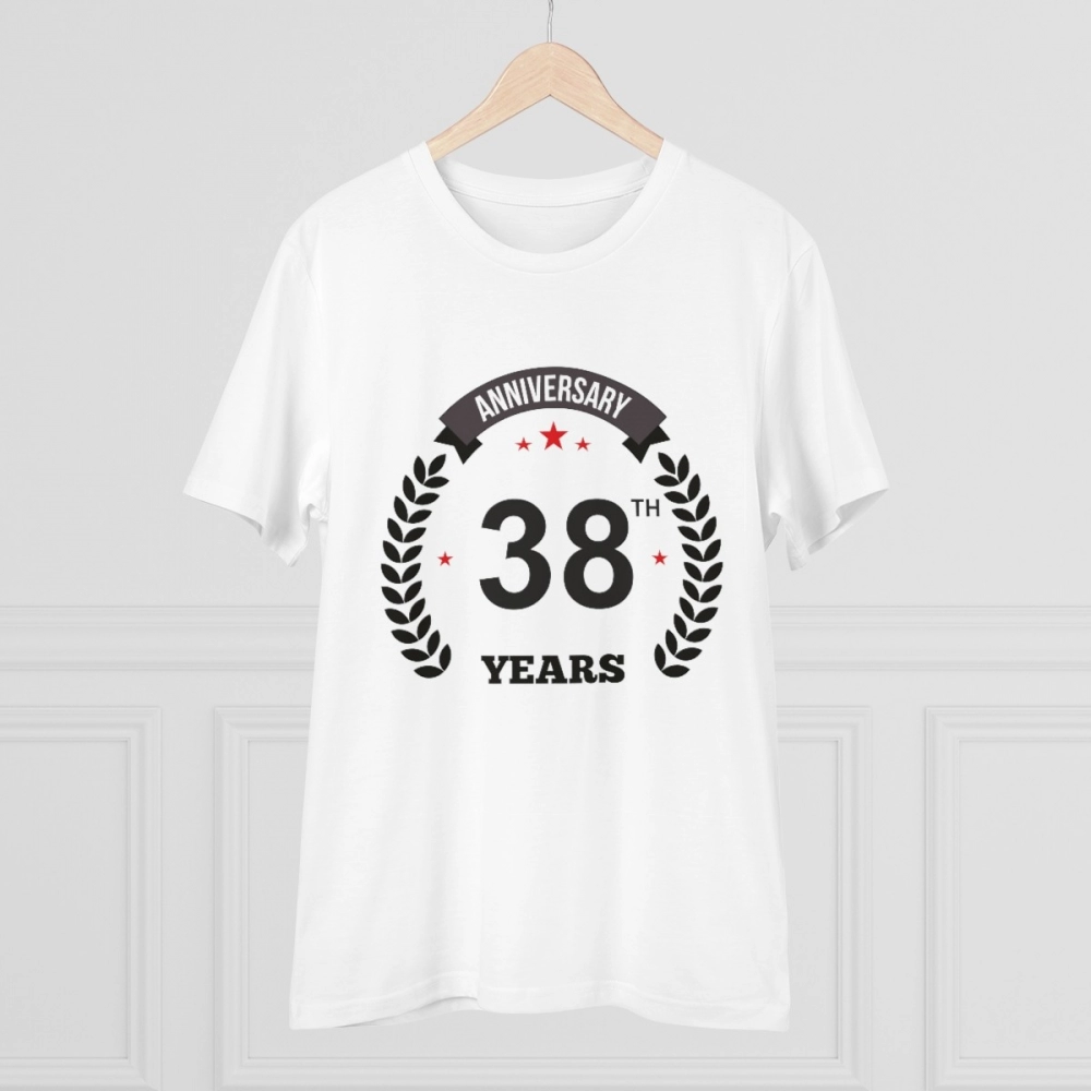 Generic Men’s PC Cotton 38th Anniversary Printed T Shirt (Color: White, Thread Count: 180GSM)