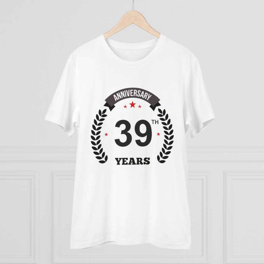 Men’s PC Cotton 39th Anniversary Printed T Shirt (Color: White, Thread Count: 180GSM)