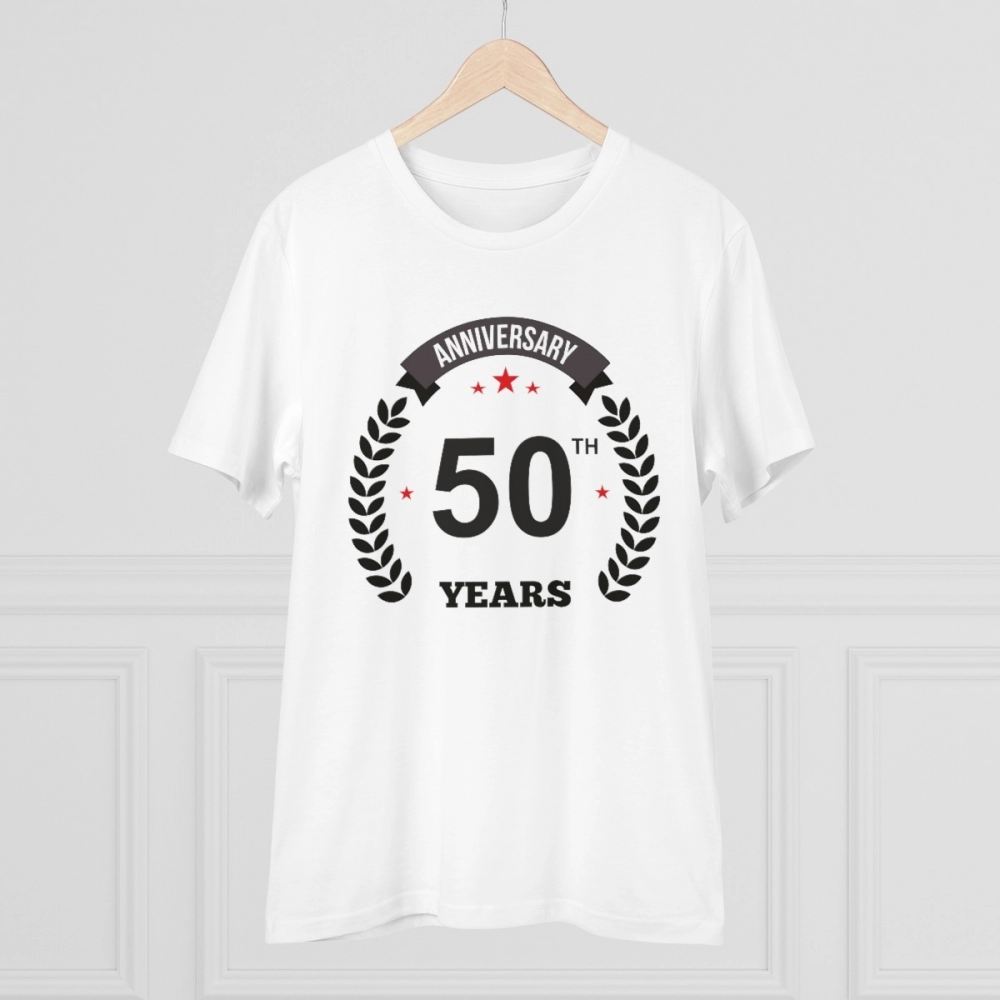 Generic Men’s PC Cotton 50th Anniversary Printed T Shirt (Color: White, Thread Count: 180GSM)