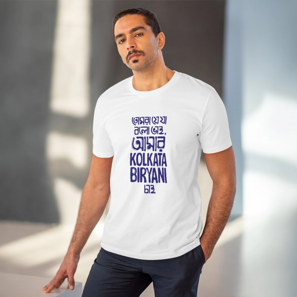 Generic Men’s PC Cotton Bengali Designs Printed T Shirt (Color: White, Thread Count: 180GSM)