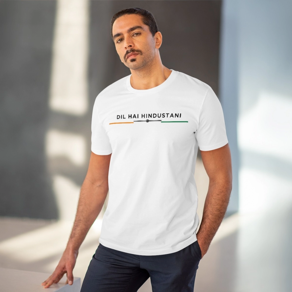 Men’s PC Cotton Dil Se Hindustani Printed T Shirt (Color: White, Thread Count: 180GSM)