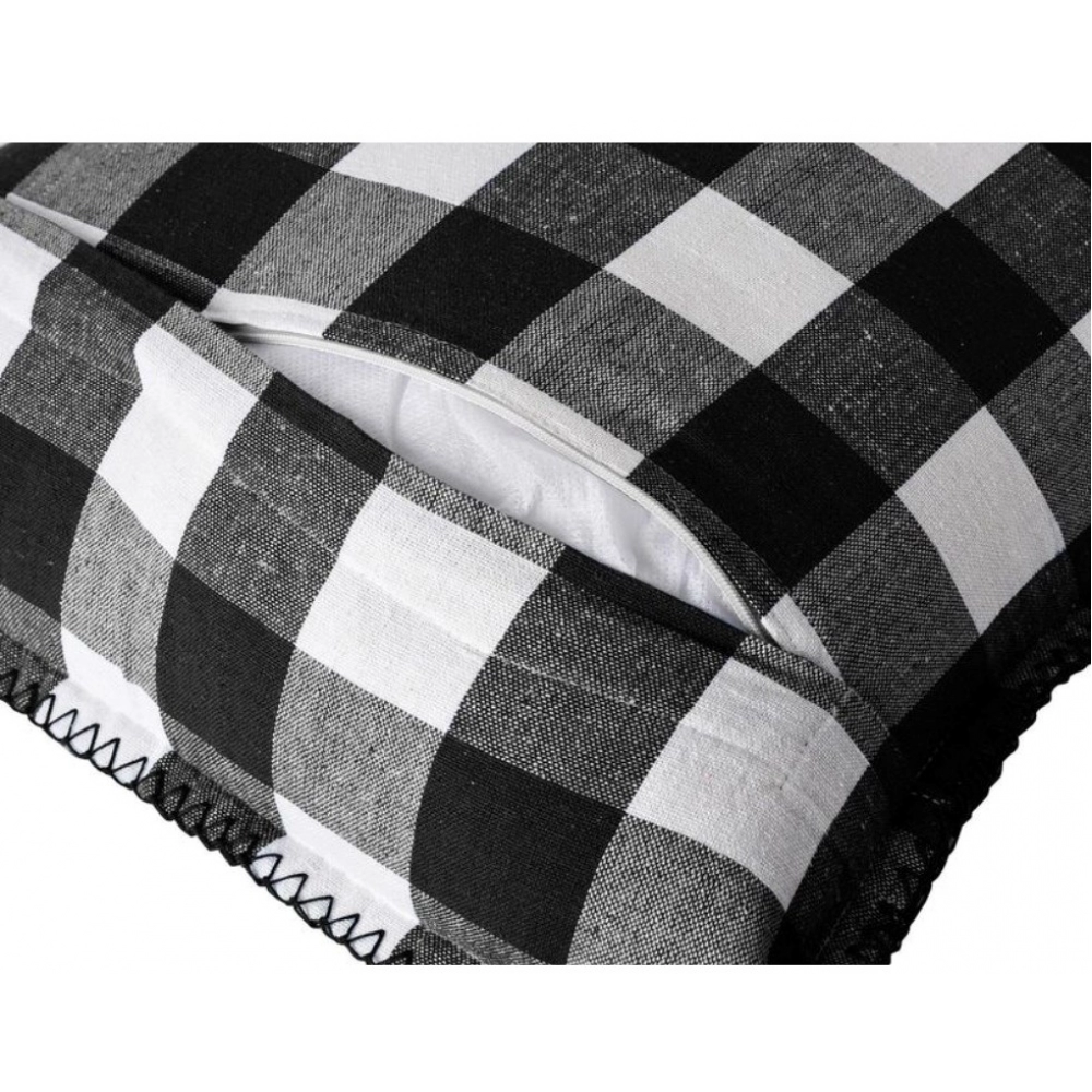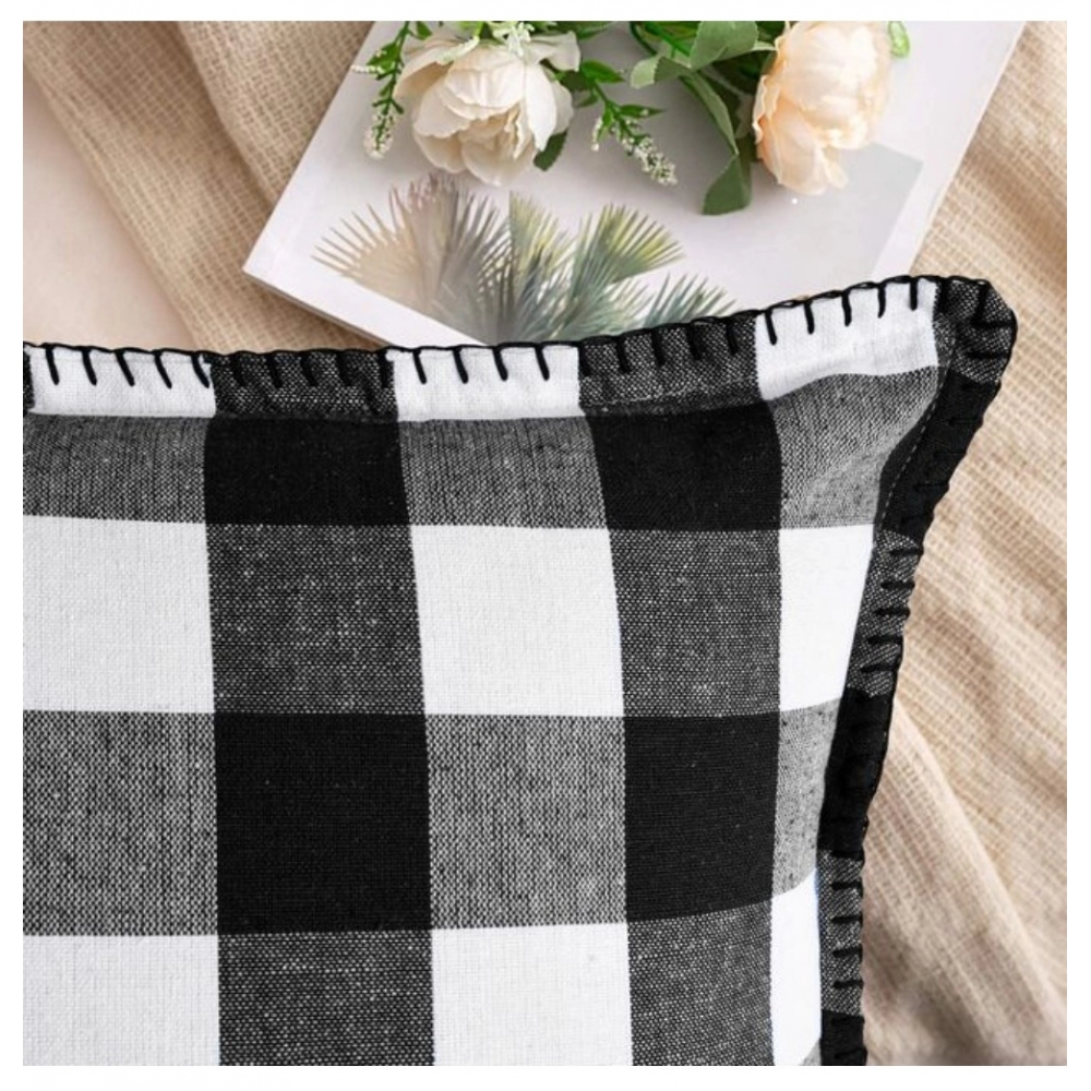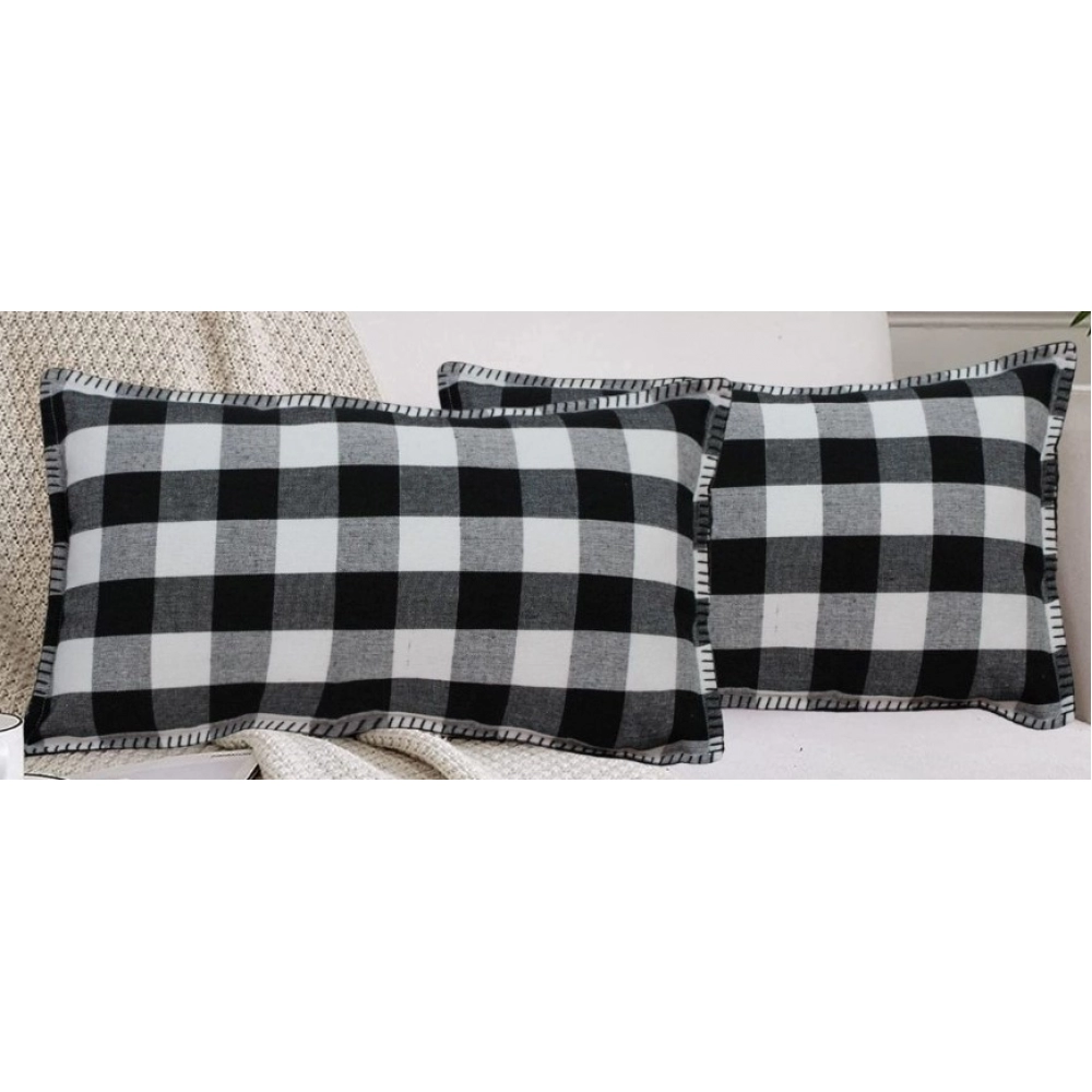 Generic Pack Of_2 Cotton Checkered Cushion Cover With Blanket Stitch (Black, Size: 12×20 In)