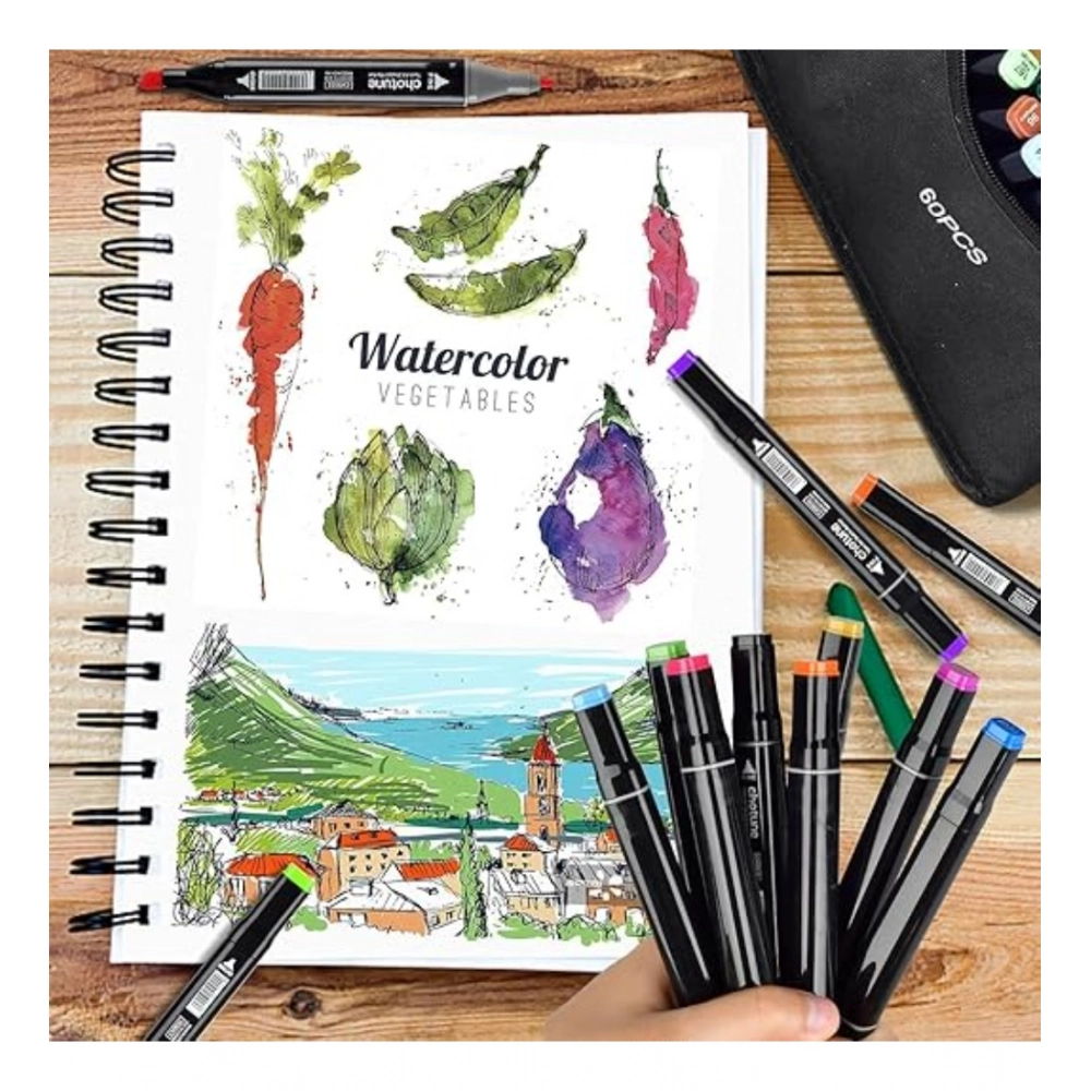 Generic Plastic 60Pcs Colors Art Markers Sketch Pen Dual Tip Artist Art Marker (Multicolor )