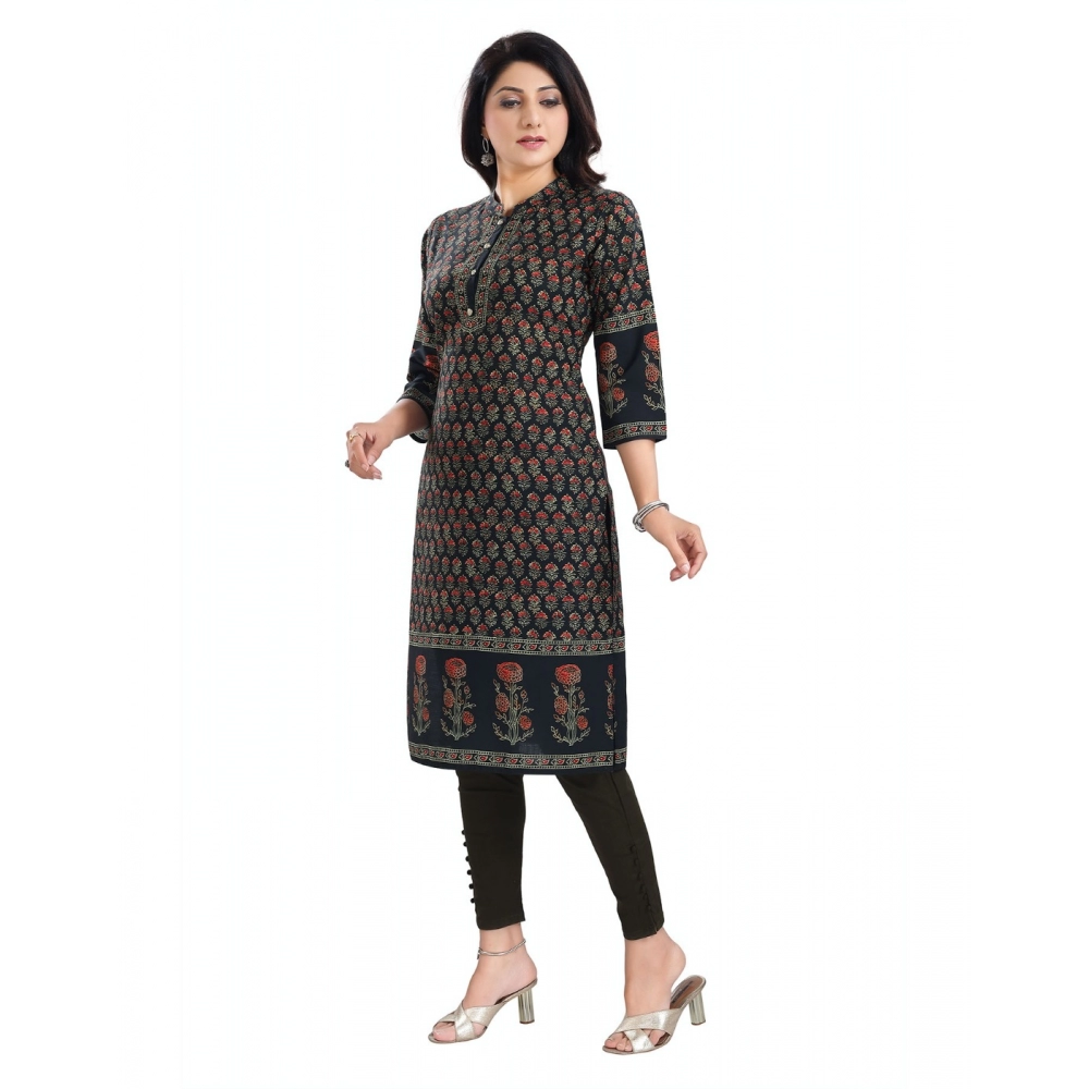 Generic Women’s 3/4th Sleeve Cotton Blend Tunic Long Kurti (Black)