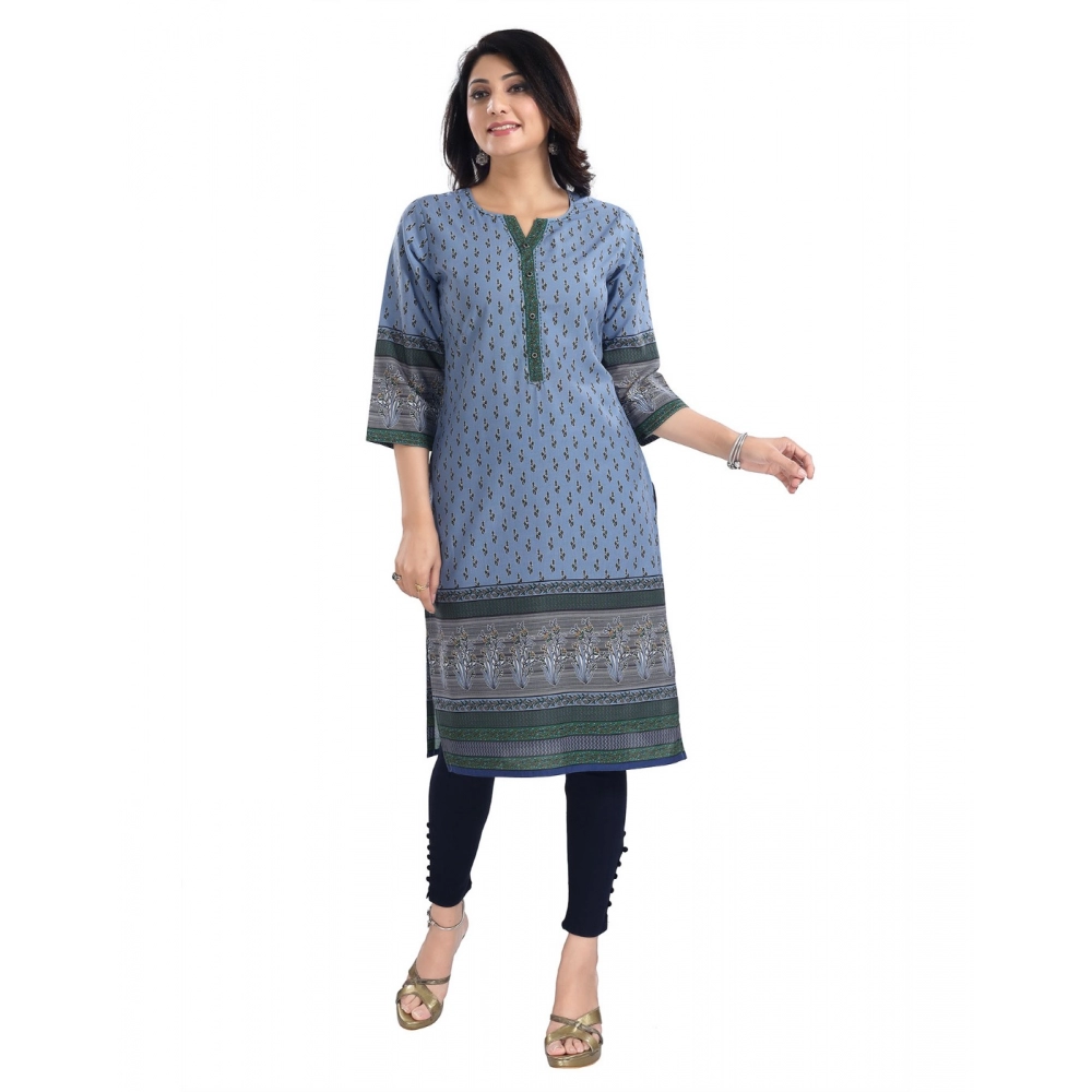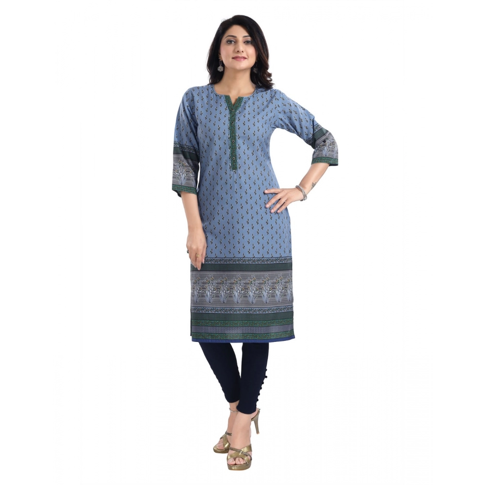 Generic Women’s 3/4th Sleeve Cotton Blend Tunic Long Kurti (Blue)