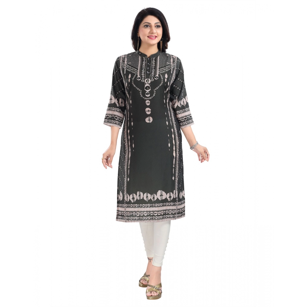 Generic Women’s 3/4th Sleeve Masleen Tunic Long Kurti (Olive Green)