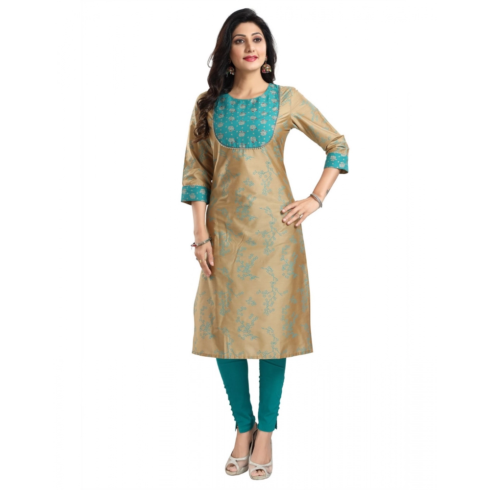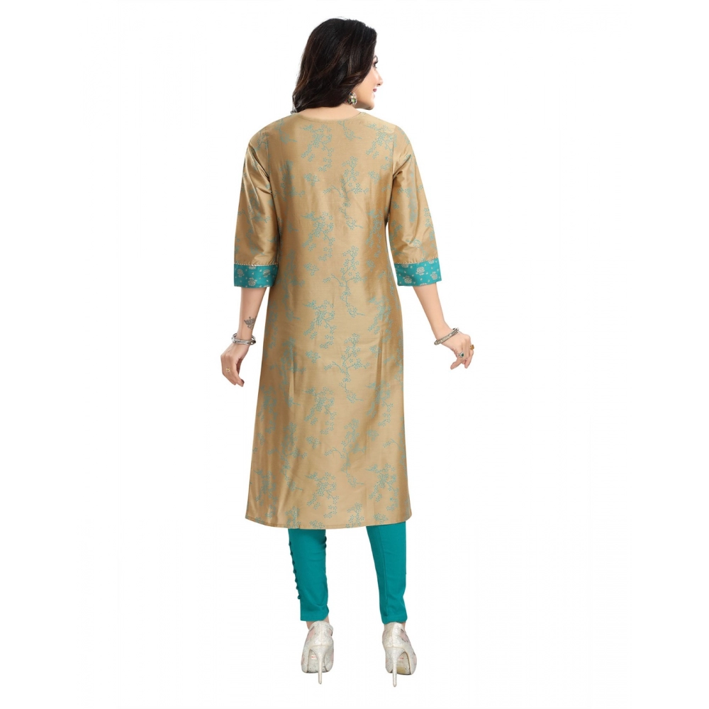 Generic Women’s 3/4th Sleeve Silk Blend Tunic Long Kurti (Beige)