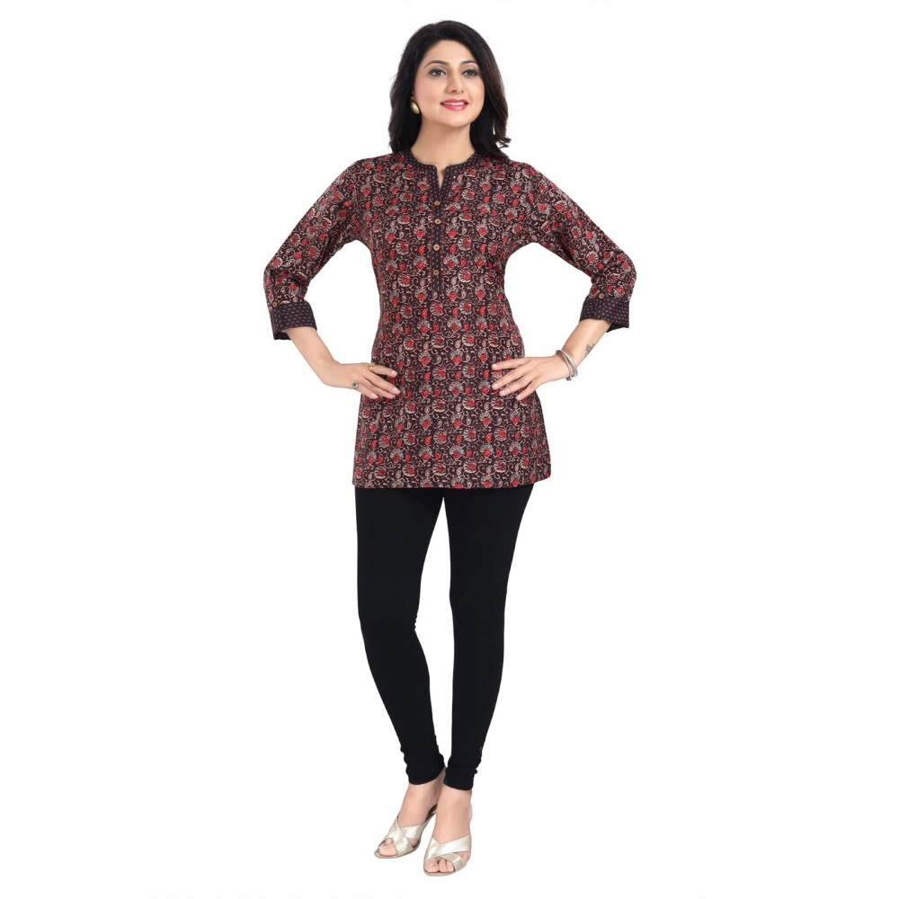 Generic Women’s 3/4th Sleeve Viscose Blend Tunic Short Top (Brown)