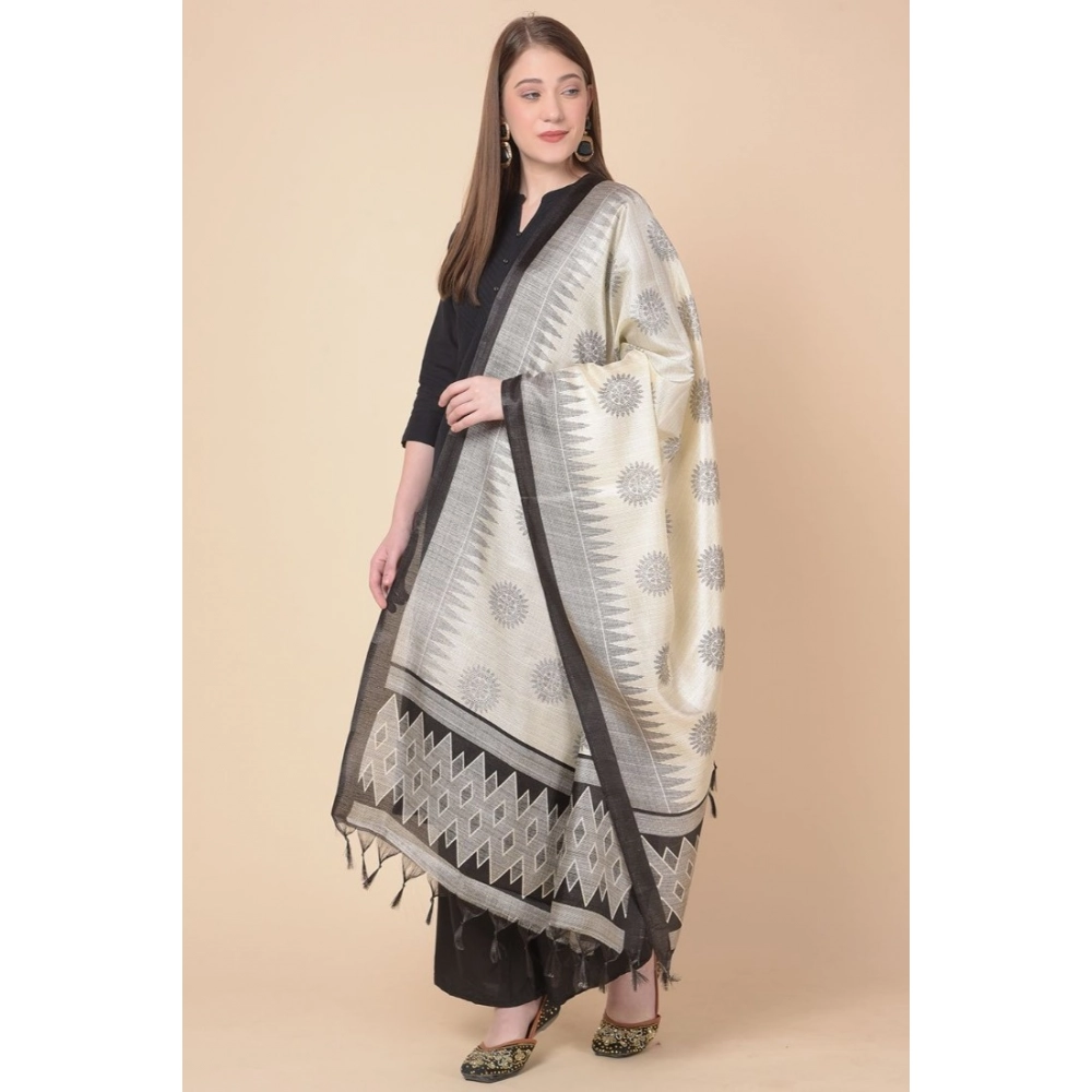 Generic Women’s Art Silk Printed Dupatta (Black, Length: 2.25 to 2.50 Mtr)