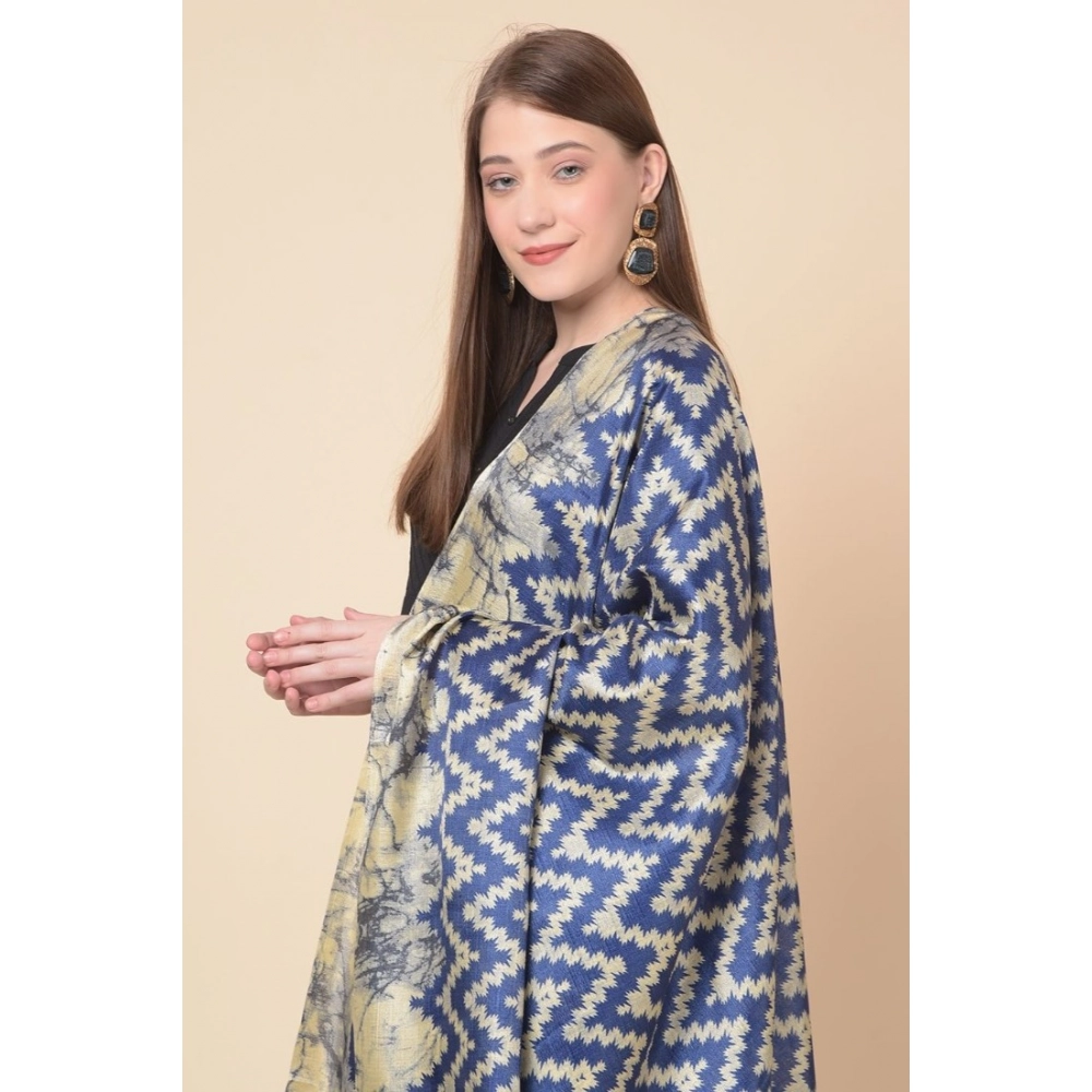 Generic Women’s Art Silk Printed Dupatta (Blue, Length: 2.25 to 2.50 Mtr)