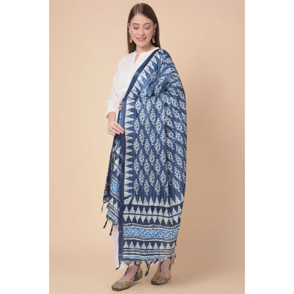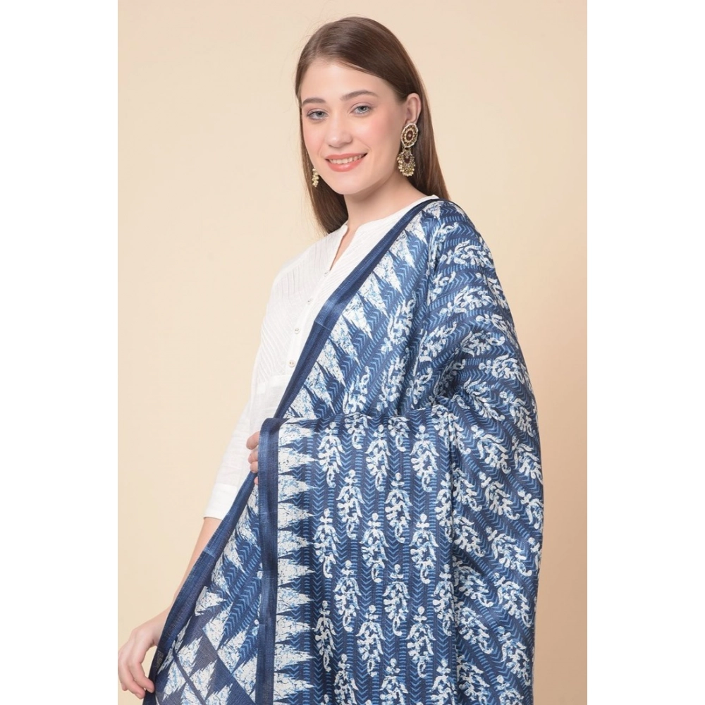 Generic Women’s Art Silk Printed Dupatta (Blue, Length: 2.25 to 2.50 Mtr)