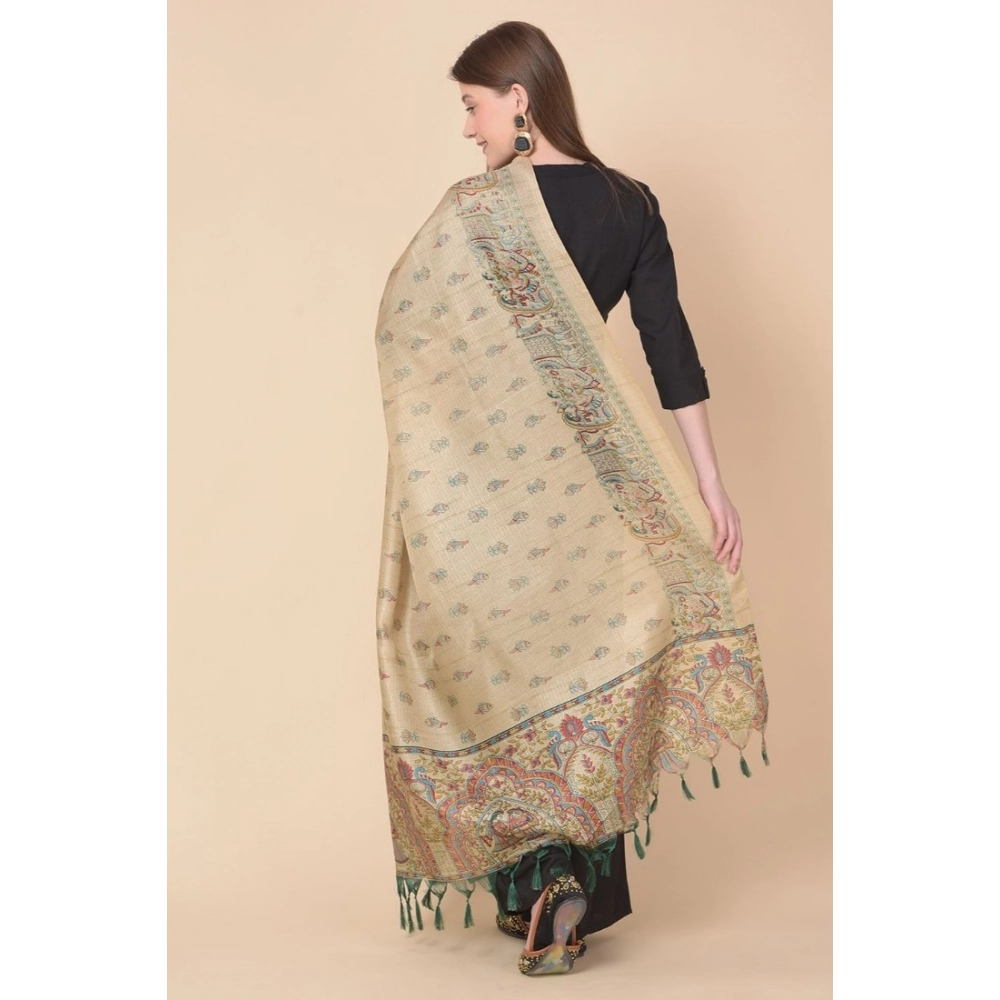 Generic Women’s Art Silk Printed Dupatta (Gold, Length: 2.25 to 2.50 Mtr)