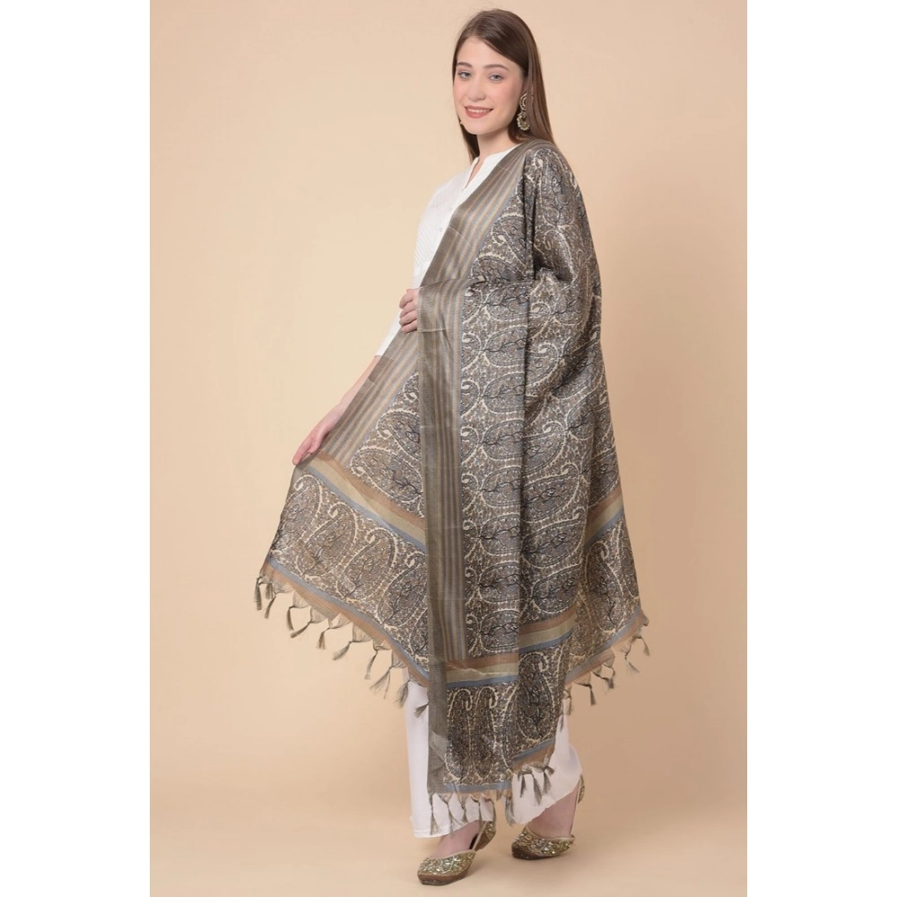 Generic Women’s Art Silk Printed Dupatta (Grey, Length: 2.25 to 2.50 Mtr)
