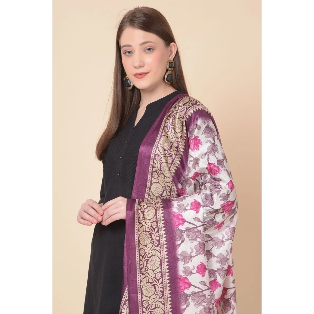 Generic Women’s Art Silk Printed Dupatta (Purple, Length: 2.25 to 2.50 Mtr)