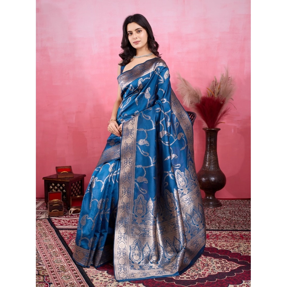 Generic Women’s Banarasi Silk Printed Saree With Unstitched Blouse 5.5Mtr (Pinch)
