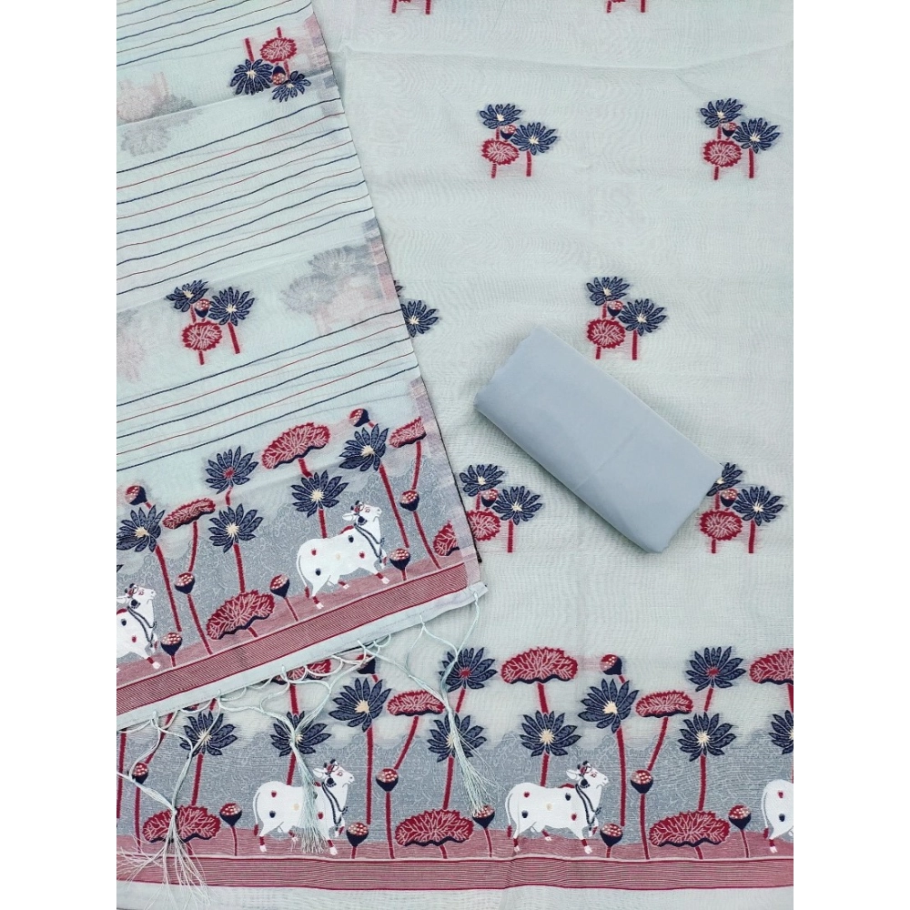 Generic Women’s Banarasi Silk Printed Unstitched Salwar Suit Material With Dupatta (Grey, 3Mtrs)