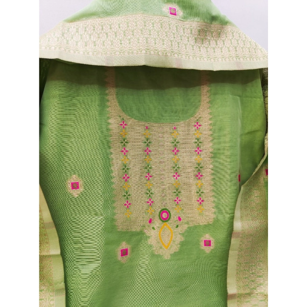 Generic Women’s Banarasi Silk Printed Unstitched Salwar Suit Material With Dupatta (Pista, 3Mtrs)