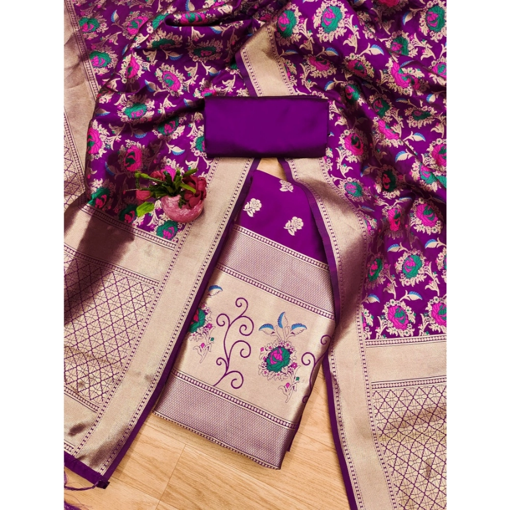 Women’s Banarasi Silk Printed Unstitched Salwar Suit Material With Dupatta