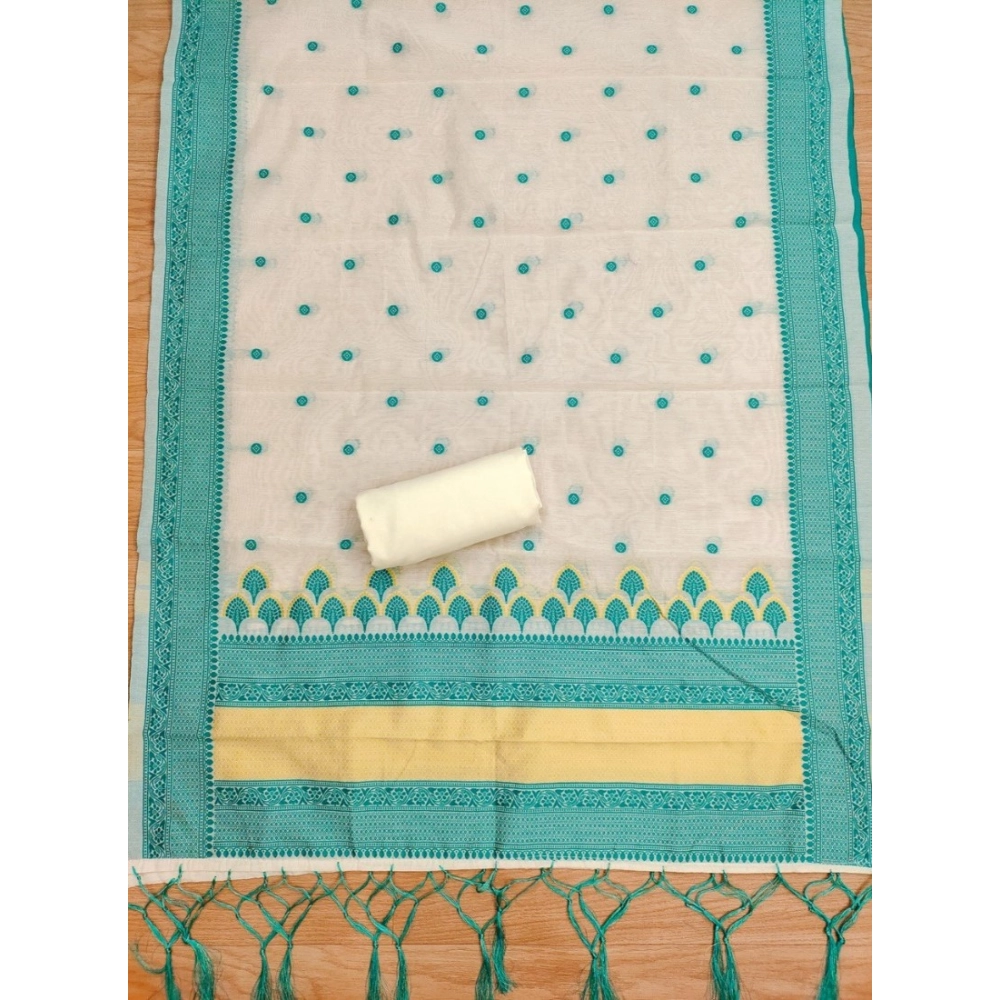 Generic Women’s Banarasi Silk Printed Unstitched Salwar Suit Material With Dupatta (Teal, 3Mtrs)