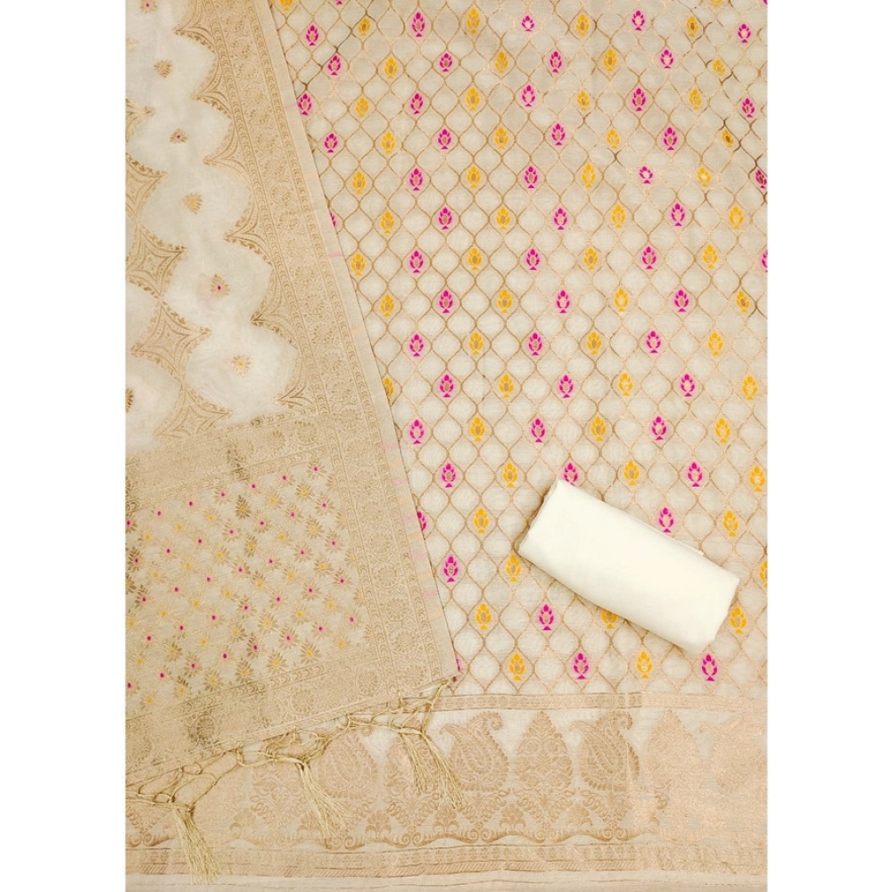 Generic Women’s Banarasi Silk Printed Unstitched Salwar Suit Material With Dupatta (White, 3Mtrs)