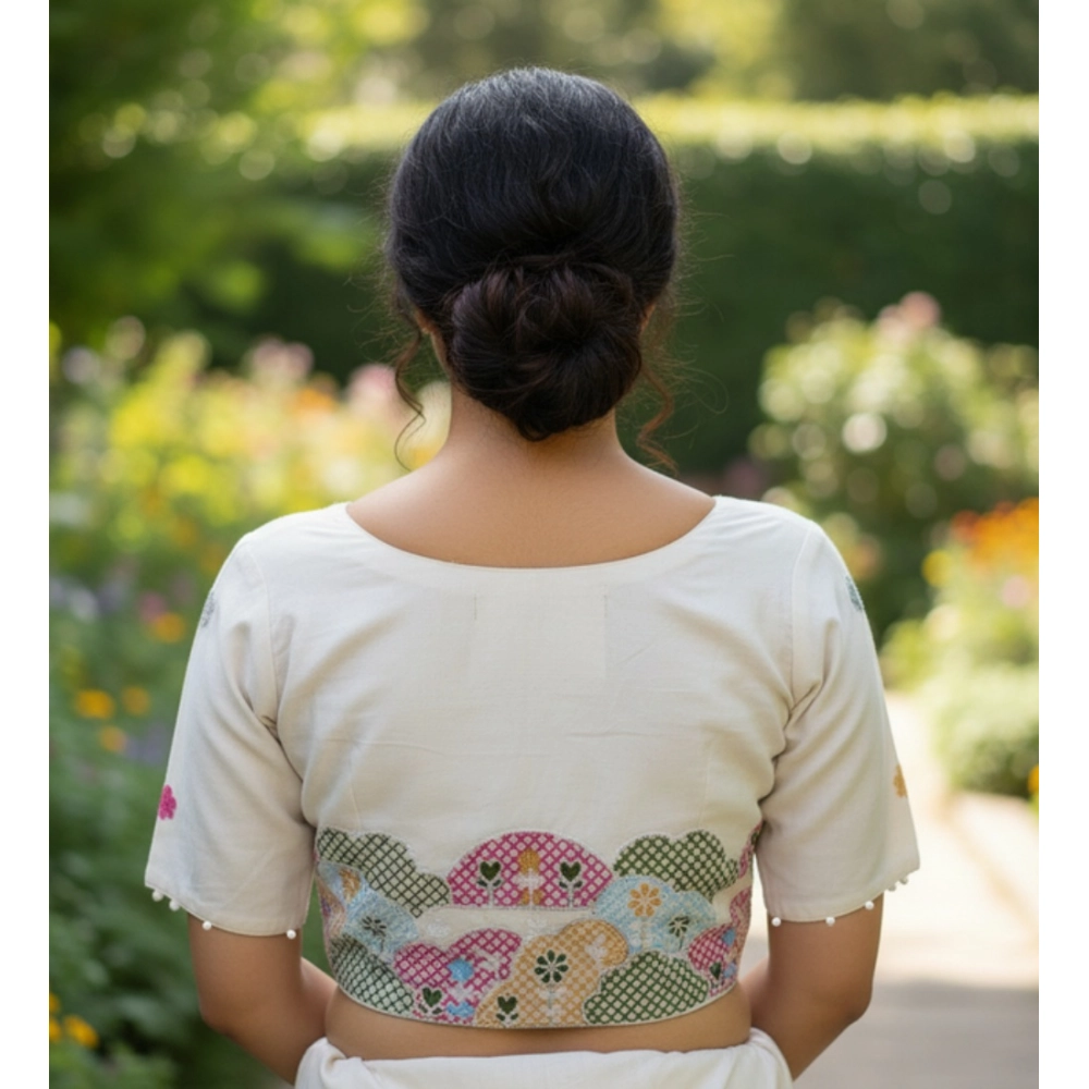 Generic Women’s Cambric Cotton Round Neck Padded Blouse (White, 38 Ready Size (Self-Alterable 36–40)