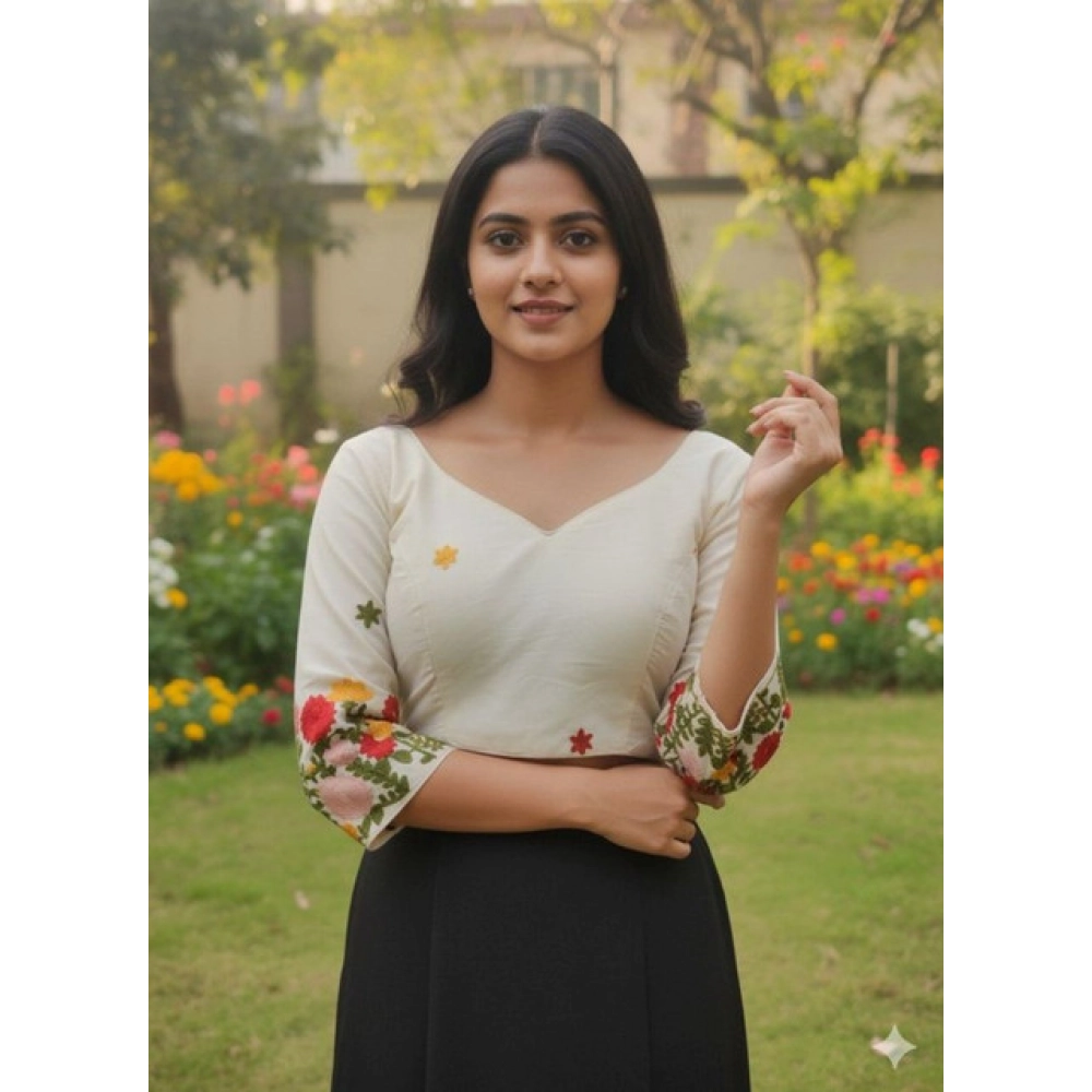 Generic Women’s Cambric Cotton Round Neck Padded Blouse (White, 38 Ready Size (Self-Alterable 36–40)