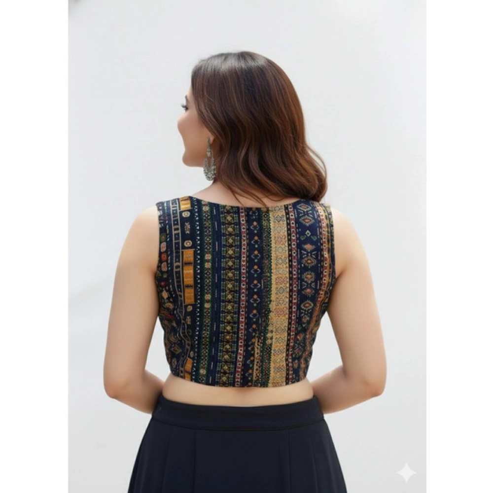 Generic Women’s Cambric Cotton V Neck Padded Blouse (Navy, 38 Ready Size (Self-Alterable 36–40)