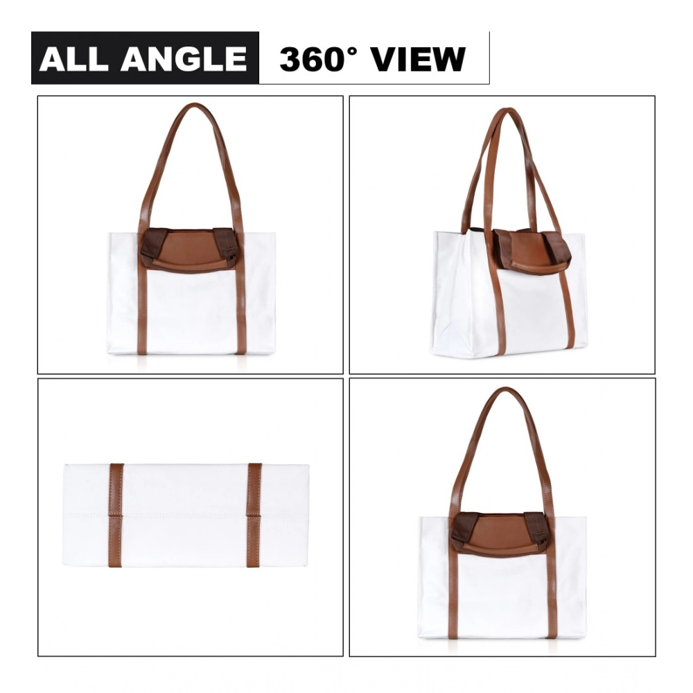 Generic Women’s Canvas Medium Top handle Satchel Zipper Handbag (White)