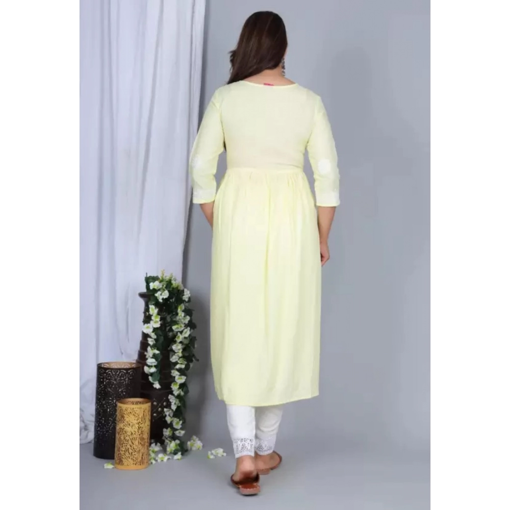 Generic Women’s Casual 3/4 Sleeve Embroidered Rayon Anarkali Gown (Yellow)