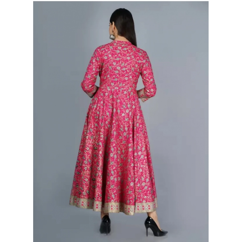 Generic Women’s Casual 3/4 Sleeve Printed Rayon Anarkali Gown (Pink)